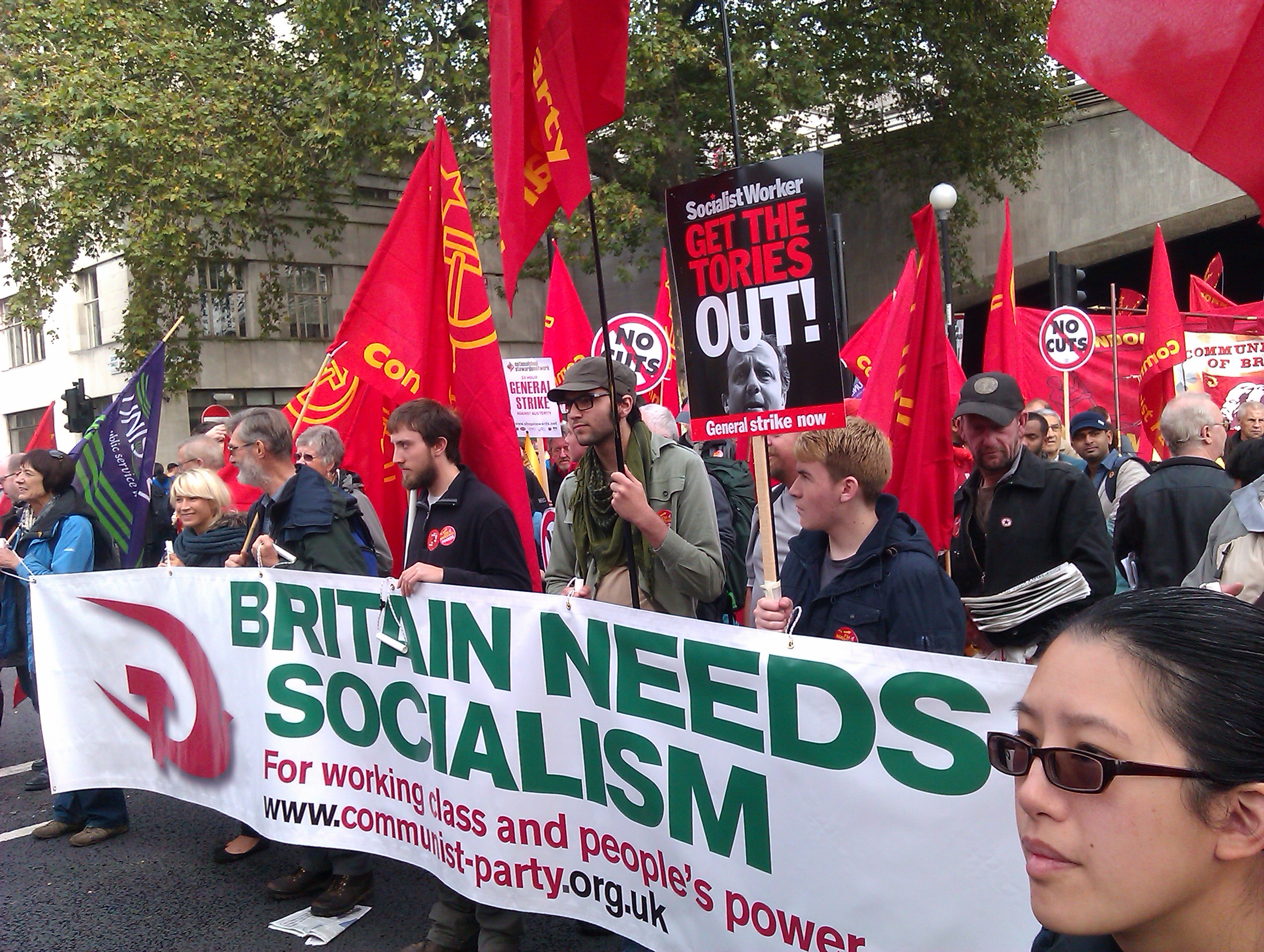 We marched with the Socialists and the Communists, the Teachers and the Firemen, the Musicians and the Railway Workers, the Green Party and the foreign students – we all marched together as equals in our humanity. The march was peaceful, good natured and attended by hundreds of thousands of people! The Conservative Mayor of London – Boris Johnson – ensured a very heavy Police presence, but unlike the Student Demonstration, we were not kettle-drummed or baton charged, although there were plenty of batons in clear view. The Police were dressed in riot over-alls and military style boots, obviously prepared for a riot – but despite the numbers, no riot materialised. The sheer numbers the marchers represented spoke for itself. The government controlled media may choose to ignore this march, or play it down, but the government knows that in the next election, the people will vote them out of office. On this day we marched as comrades!
