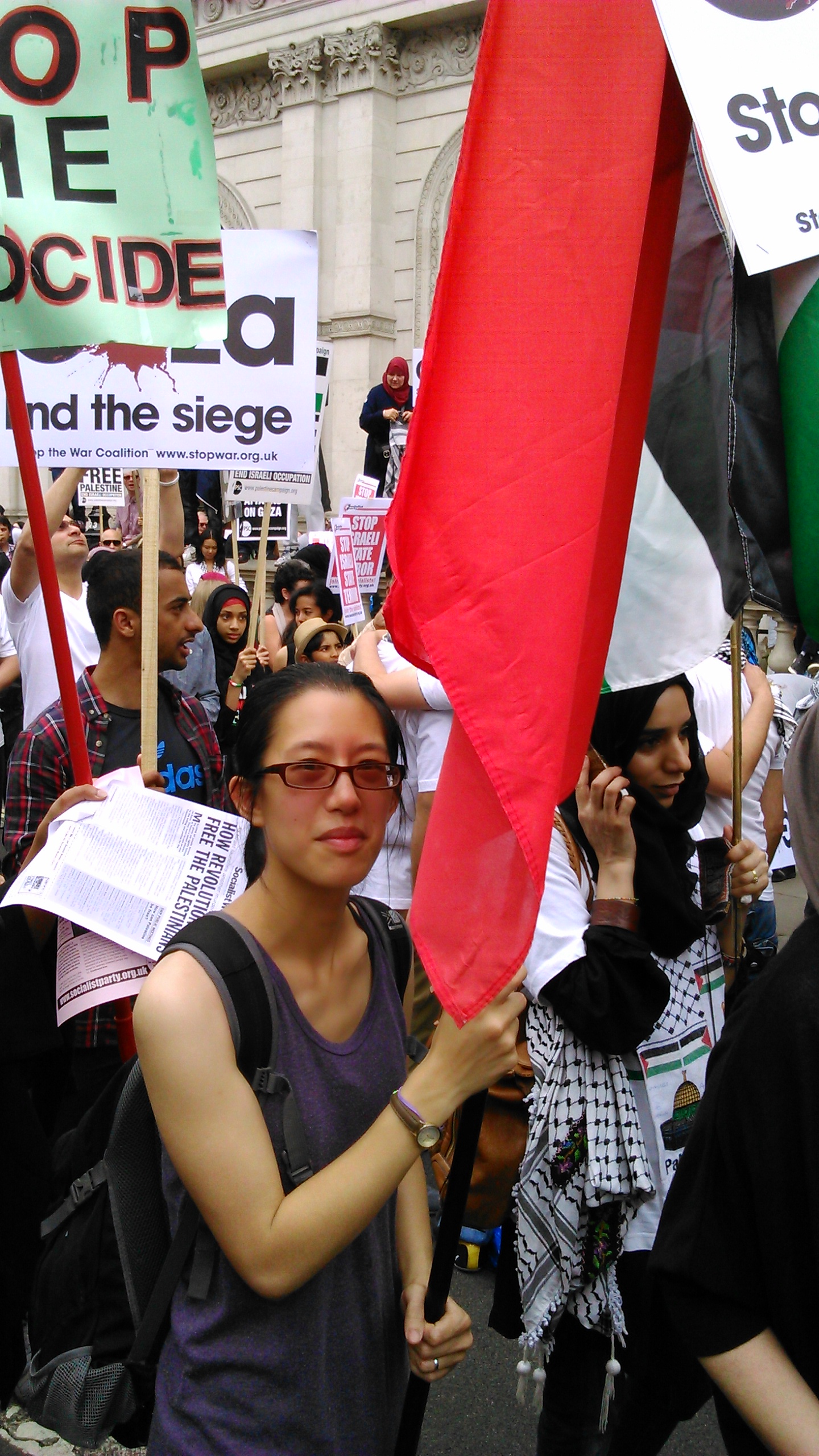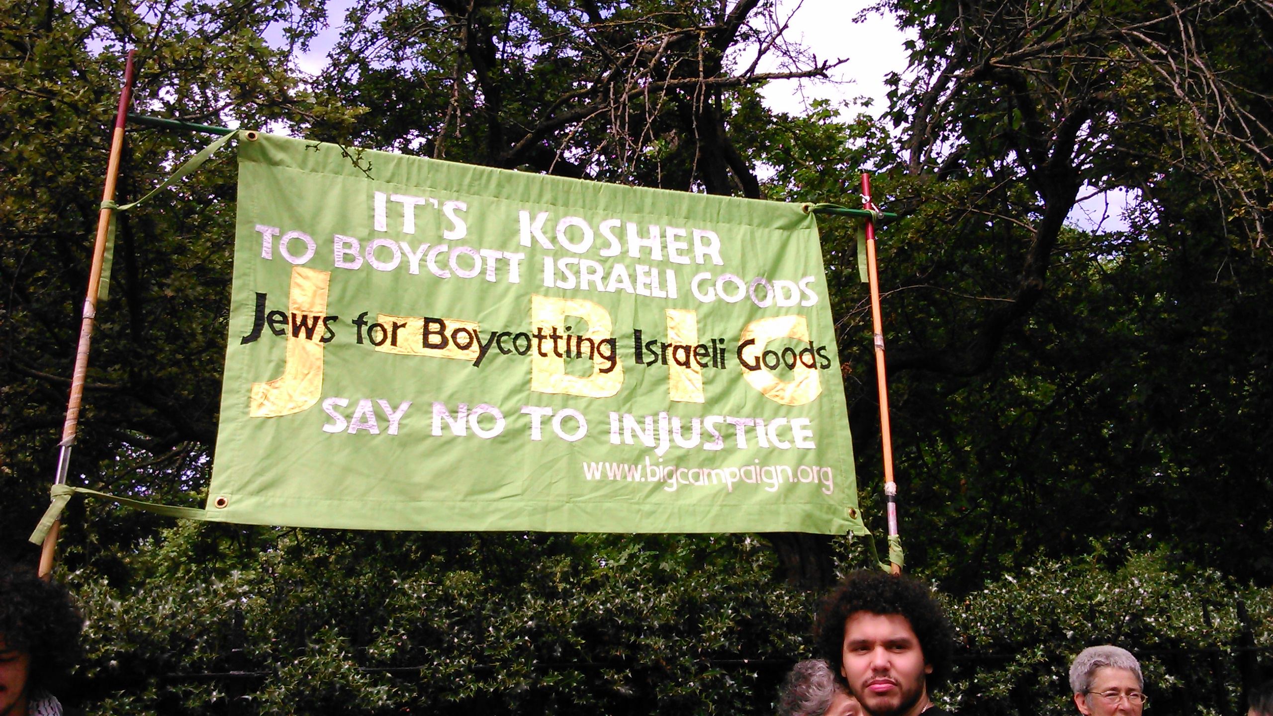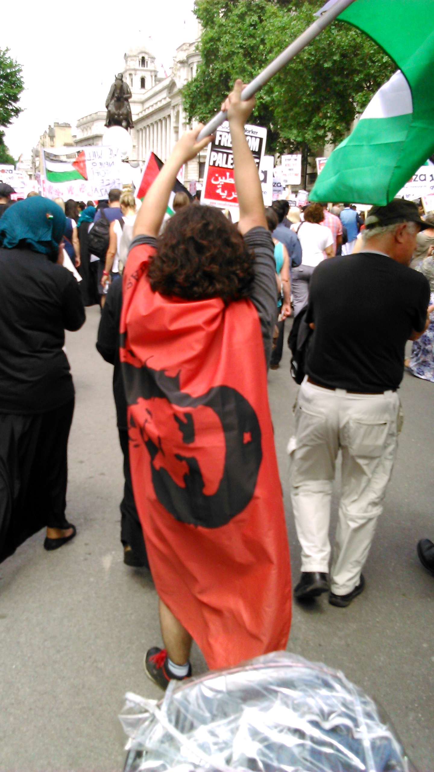 Perhaps one of the most poignant events today, occurred outside Hyde Park, where a small group of Jewish people representing the ‘Boycott Israeli Goods’ (BIG) campaign, unfurled a banner which stated ‘It’s Kosher to boycott Israeli Goods’ and ‘Say No To Injustice’. Many pro-Palestinian protestors thanked them for their presence and support, proving that a protest against Israel is not necessarily a campaign against Jewish people, nor motivated by any notions of anti-Semitism. This protest in London today should send shock raves through Tel Aviv!