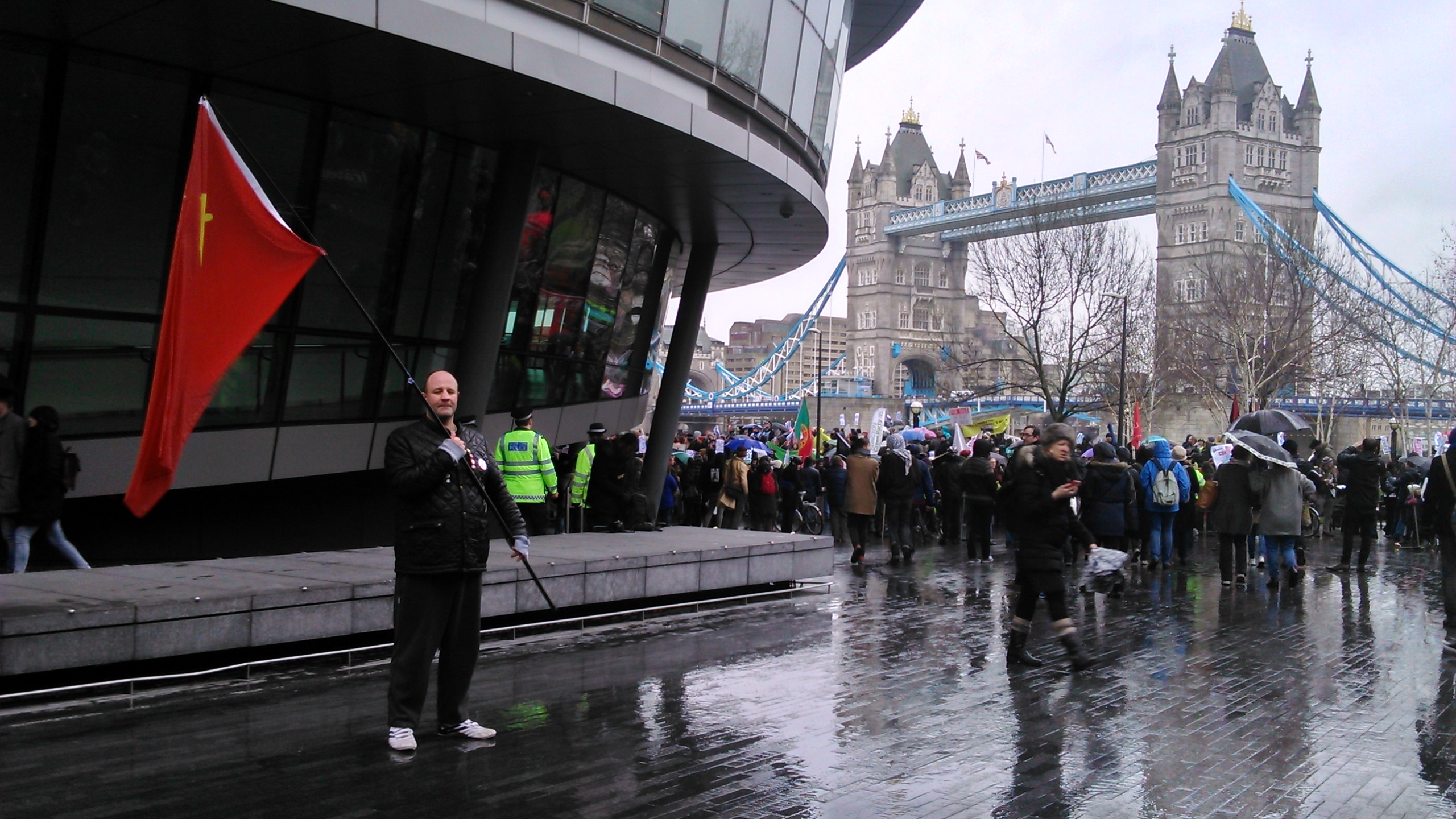 Ordinary people from the length and breadth of the United Kingdom – and many from abroad – gathered to together to march through the deprived working class areas of London to City Hall where the rightwing London Mayor – Boris Johnson – sits in his opulent offices and implements the vicious and brutal cuts in housing, benefits, and services to the most vulnerable citizens under his care, as well as those employed in poorly paid jobs.