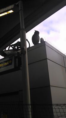 This is a life-like model of an owl placed near the lift entrance that serves Platform 5 of Morden Tube Station in South London. This is the southern end of the Northern Line tube service which was opened on the 13th of September, 1926. Apparently, Transport for London (TFL) have a policy of placing very realistic Owl models at various stations situated above ground, as a means to scare away pigeons and prevent them from landing, feeding, and nesting etc. I personally detest this treatment of our pigeons. On the other hand, the pigeons appear unbothered and seem to know that this is just a model. I updated this post in 2023 – realising that the picture I took on the 2.2.2019 has disappeared! Never mind – what we are seeing here – is the pretend owl through the lenses of ever-improving cameras!