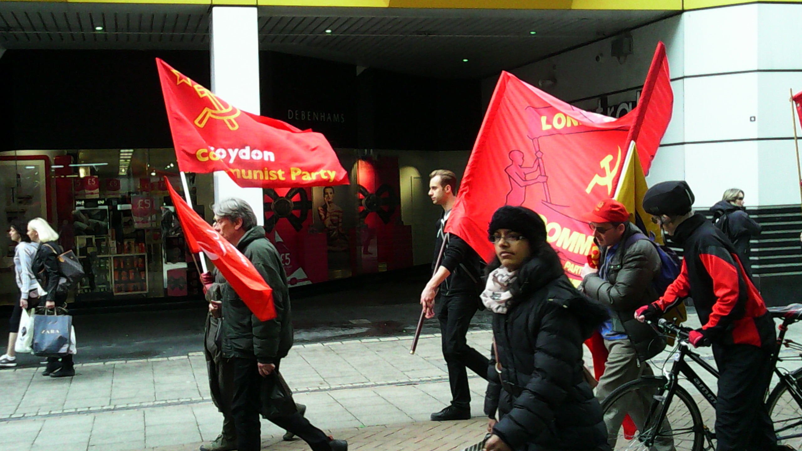The leadership of the CPB took the decision to use a loud-hailer to on the march to condemn the Tory and LibDem government, and point out the terrible and destructive changes they have made to the UK, which includes the dismantling of the Welfare State, and the privatisation of the National Health Service (NHS) – both of which were established in 1948 by the Labour Party. The CPB called upon voters to support the local Labour Party candidate in an effort to keep the Tories out of power. Some fellow Comrades did not agree with this policy – as the Labour Party nolonger pursues leftwing policies that represent the workers, but rather policies that pander to middle class sentiment and aspiration.