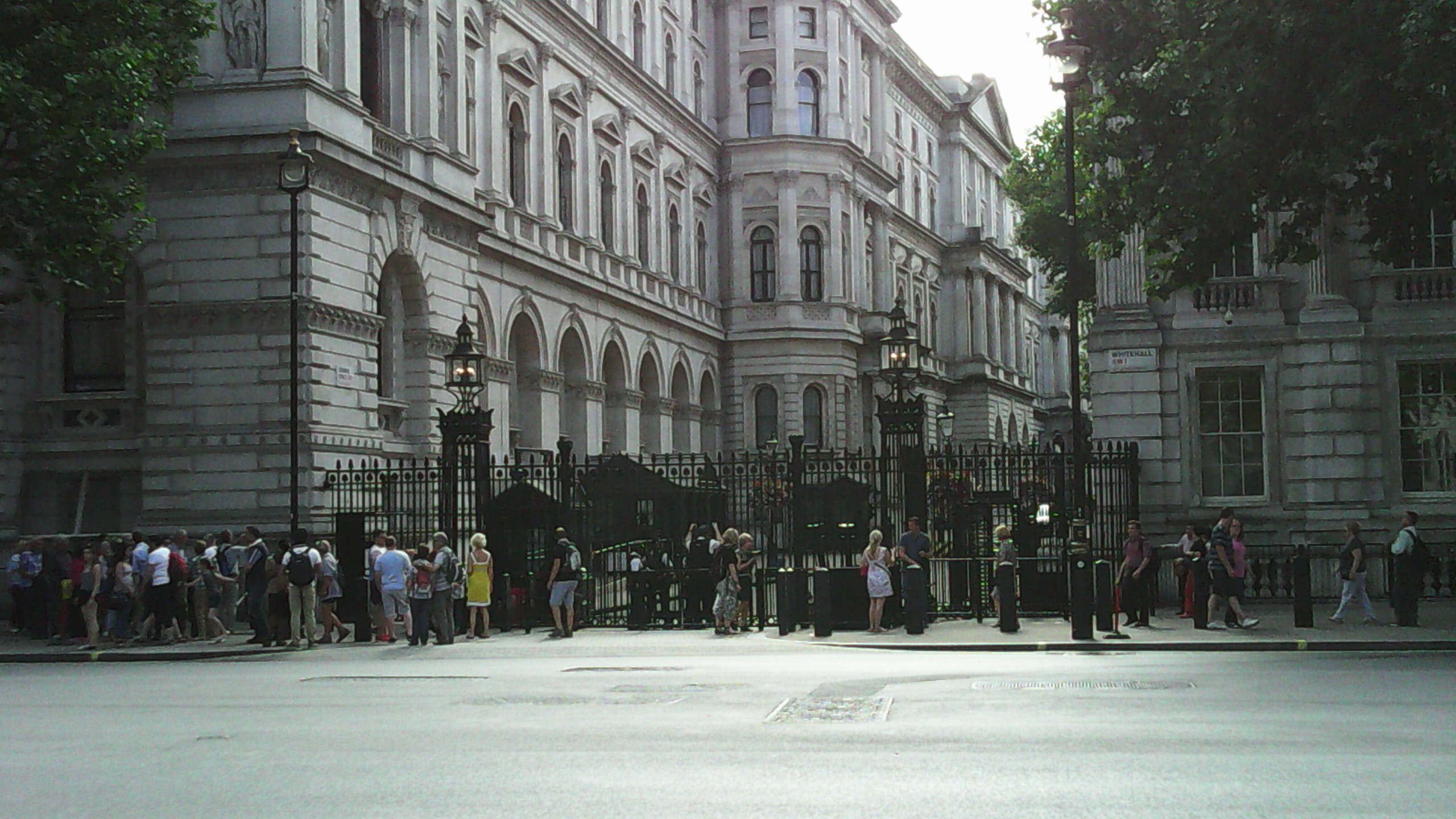 Hundreds gathered between 5:30-7:30pm on Richmond Terrace directly opposite Downing Street in London. As temperatures reached 28 degrees, concerned individuals and groups came together to remember the 2,200 men, women and children who were killed last year by Israel’s military forces. This incident has been just one tragedy in a long line of murderous activity dating back to the formation of the Israeli State in 1948 – but which has its roots in Palestine before that date in Jewish terrorism. This terrorism – which saw occupying British soldiers murdered by Jewish insurgents, is premised upon ‘Zionism’ or rightwing Jewish racism. Like any racism, it demeans and dehumanises those it deems ‘inferior’ beings – and for the modern State of Israel – the victims are the Palestinians who due to British imperialism, have lost their ancient country to Jewish nationalism and colonisation. The Palestinians are oppressed on every front and when they resist, Israel unleashes a massive military response – illegal action that is unquestionably support by the UK and the USA. This demonstration remembers the victims of Jewish racism and calls upon the international community to stop supporting Israel’s Zionist racism and help the oppressed Palestinians. This demonstration was arranged by the Palestinian Solidarity Campaign: