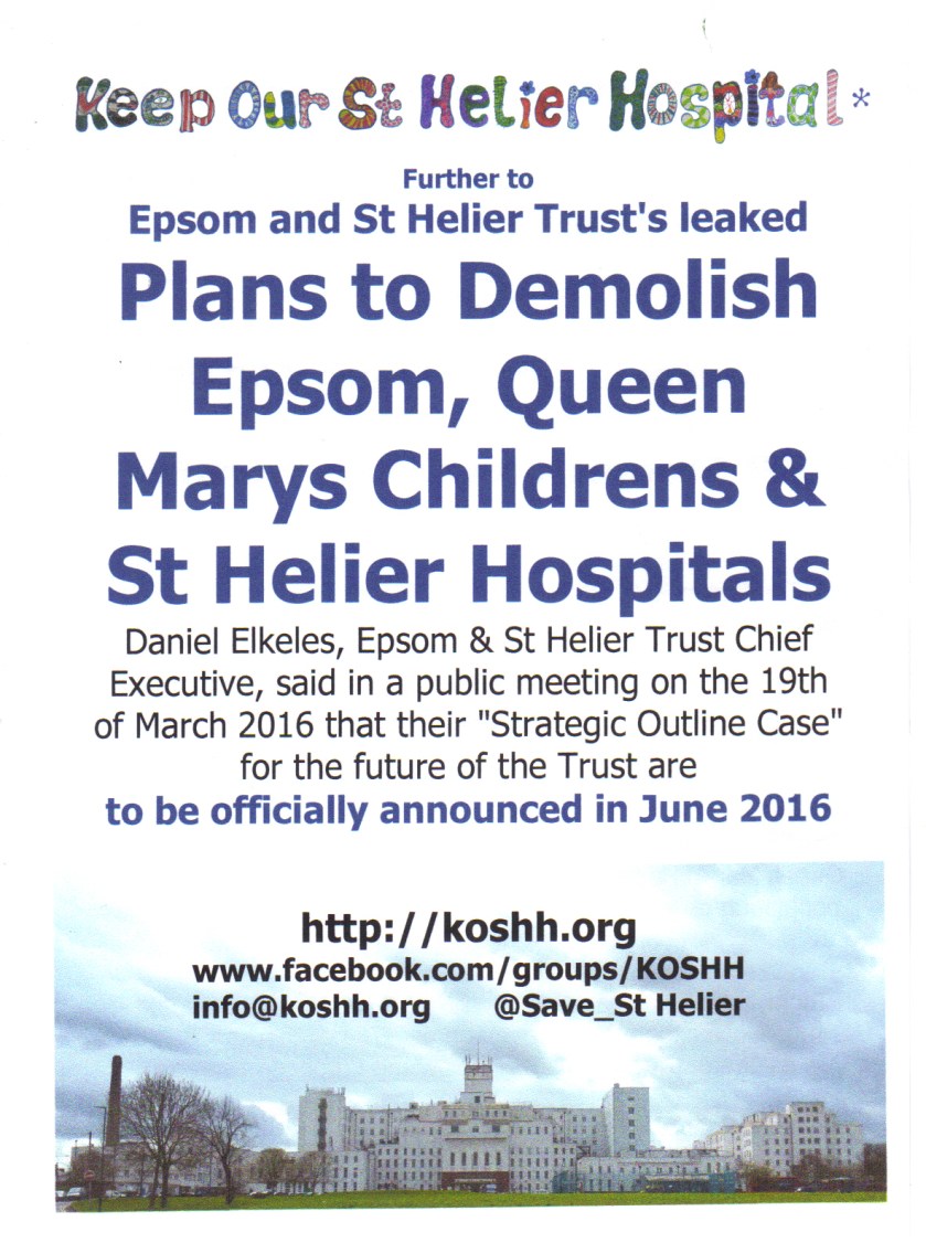 Plans to Demolish Epsom, Queen Marys Children & St Helier Hospitals
