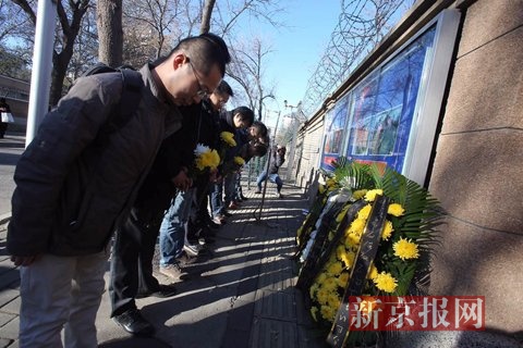 北京市民献花悼念卡斯特罗 古巴驻华使馆降半旗