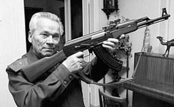 Mikhail Kalashnikov (1919-2013) Holding the AK47 He Designed
