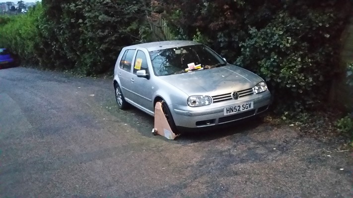 It now appears that the car-tax has ‘expired’, and so the Local Council has had the car ‘clamped’, paradoxically stating that this car ‘should not be moved’. After all these months the Local Council have not been able to ‘lawfully’ move or destroy this car, simply because there is no ‘legal’ basis for such action. This is corruption at the local government level, which sees a Local Council coerced into the murky waters of semi-legal activity by a privileged community of Council Tax payers. From what I have heard, these people do not like an ‘old’ looking car parked in their area, and so the Local Council has tried to accommodate these ‘nimby’ attitudes with half-arsed actions that risk the chance of being sued in Court. The point is that at the time this car was parked, ‘no one’ knew whether the owners were on holiday, or would would return in a few week’s time. As matters have transpired, the vehicle does now appear to be ‘abandoned’. What concerns me is the nature of the car’s contents – with a fast-food drink container and straw left near the gear-stick – as if the owner had just popped-out to get something before quickly returning – only never to have returned. The car is obviously not ‘stolen’ or the police would have got involved – so where is the owner? It was left near the seafront, and it is not beyond the realm of possibility that the owner suffered a fatal accident walking on he rocks, or even committed suicide.
