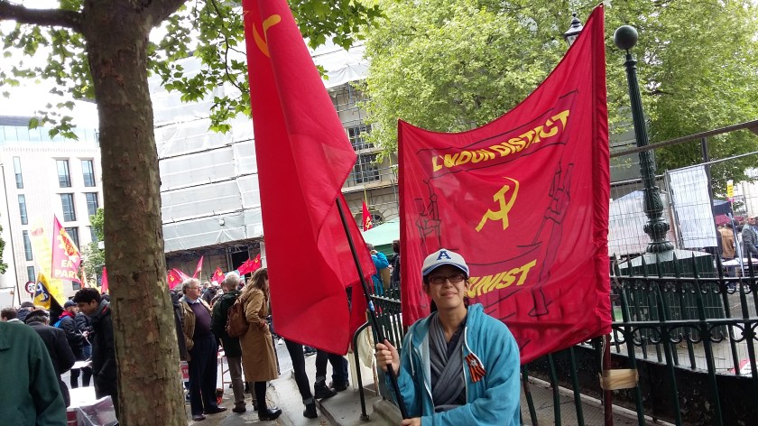 Thousands of people (holding various and diverse leftwing political views) converged upon the Clerkenwell Green area of Farringdon (opposite the Marx Memorial Library), to celebrate ‘labour’ and the ‘solidarity’ of the international working class. This is one of the few events that gathers Trotskyites and Marxist-Leninists, Maoists and bourgeois leftists together in equal number. As usual the parasitic (Trotskyite) Socialist Workers Party set-up its stalls outside of all major public transport exits, as a means to give-out its propaganda leaflets and placards to unsuspecting marchers. These marchers (who are not members of the SWP, and probably do not support Trotskyite revisionism) then unwittingly carry this SWP nonsense for free, whilst the SWP members never participate in the marches they infiltrate. When the march starts off, the SWP stalls are quickly shut-up and moved to the end location of the march – where the deceitful SWP anti-Marxist-Leninist indoctrination begins all over again! This diversity of leftism is evident in the many different groups all trying to sell their various magazines and journals to one another’s followers, often failing unless given-out for free. Many wander about elucidating on this or that matter, often espousing bourgeois leftist rhetoric, rather than any genuine Scientific Socialist understanding. On the other hand, if you listen carefully to some of the older people, true leftwing Socialist and Communist understanding is evident. What is one of the defining points of London’s May Day March is that many people from abroad attend simply to be in the city that Karl Marx lived within, and wrote much of his defining theory. The British leftwing is not united in the traditional sense, but split into many factions all striving to establish hegemony over the Scientific Socialist middle ground, each with their own unique take upon current dialectical interpretation. The Labour Party. for instance, is a sticking point for the Communist left. Being a bourgeois revisionist out-fit that has often (historically) betrayed the very working class it has claimed to represent, the Communist left (such as the Communist Party of Great Britain – Marxist-Leninist and the Revolutionary Communist Group) is generally scathing about its history, its capitalist friendly policies, its middle class tendencies and the behaviour of its current MPs, (quite rightly pointing-out Labour’s imperialist and revisionist priorities). Other elements, such as the Communist Party of Britain (often just called the ‘Communist Party’), has retained a historical link with the Unions, and through the Unions – the Labour Party (despite the fact that the Labour Party prohibits Communists being members of it as individuals, and has rejected the idea of the Communist Party formerly affiliating with it in the past). The irony here, is that many CPB members do not support the Labour Party due to its bourgeois, capitalist embracing policies, despite the fact that the CPB leadership has called upon its members to support Jeremy Corbyn (and by default the Labour Party he leads) in the upcoming 2017 General Election. If Trotskyism is removed from the picture (due to its collaboration with capitalism and fascism), then it has to be said that each faction of the British Communist Movement manifests an important and valid aspect of the complete dialectical truth. The Labour Party is bourgeois and revisionist, but it also remains the only and most likely vehicle for Socialists and Communists to be elected into Parliament, but this is a subject that each individual must carefully think about and decide for themselves. Today, at least, the whole world met in London and marched together!
