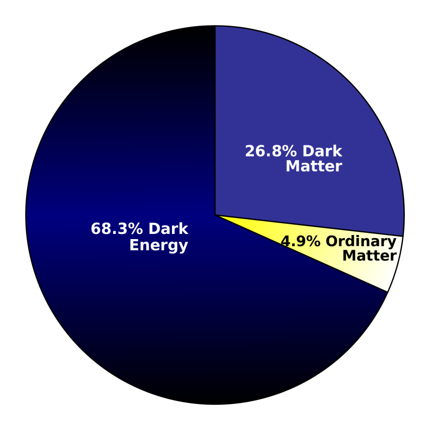 The current state of human scientific knowledge suggests that the majority of the physical construction of the universe is actually comprised of a substance that cannot, as yet, be directly observed using the most advanced technology and methodology. The majority of ‘stuff’ in the universe (multi-verse) certainly cannot be detected with the naked human eye – but it can be predicted to exist through the correct and disciplined use of the human intellect and imagination. Imagination is an important part of advanced scientific thinking, but its function is often down-played or ignored when scientific processes develop into sound theories that nolonger require ‘speculation’ to fill-in the gaps in knowledge. Of course, this might be because the human capacity to ‘misuse’ the imagination can get in the way of the scientific method, and lead the entire process away from the desired objective. Whatever the case, the constitution of the universe (multi-verse) currently looks like this: