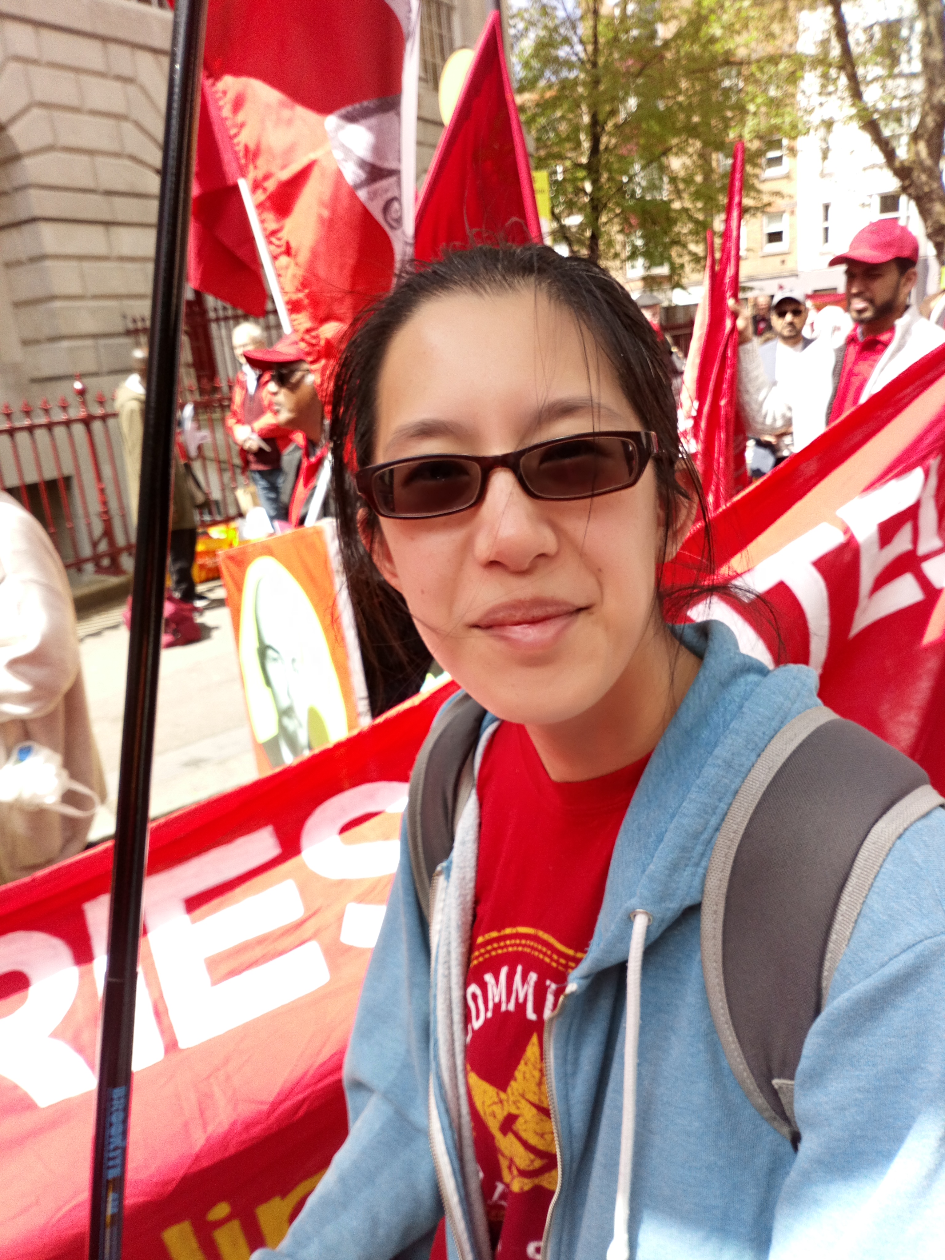 We think there was about a thousand marchers today – less than other years – with a number not even understanding basic concepts such as ‘Solidarity’ and ‘Internationalism’. This does not bode well for the Marxist-Leninist movement, and demonstrates the success of the Trotskyite disinformation campaign which has been playing-out ever since Trotsky called for his followers in 1938 to co-operate with the forces of International Fascism! To clarify about Donetsk, Russian capitalists would like to see this Socialist regime stamped-out and the EU extended into Eastern Ukraine (this is despite the fact that the Communist Party of Russia is still very popular). Russia has not recognised either Donetsk or Lugansk (i.e. the Donbass resistance), but it is true that many ordinary Russians support the self-determination of the Donbass people. China, of course, is materially supporting Donbass with humanitarian aid. From my experience, no one in Donbass wants war – but they do want Socialism. I think it is a shameful episode in leftist politics that the plight of Donetsk (and Lugansk) is not centre stage and subject to awareness campaigns and numerous protest movements. What is important is that me, Gee, Kai-Lin and Mei-An marched for the betterment of humanity!