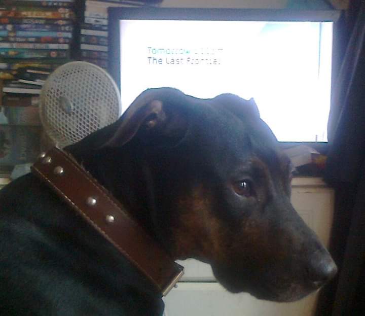 Around late summer 2009, I was told of a rescue dog being kept in a private kennels just outside of London (I think somewhere in Kent). This dog was 18 months old and a Doberman-Staffordshire Terrier cross. This dog was named ‘Honey’ due to her sweet disposition, but because she was rescued from a dog-fighting gang (as a puppy) in Croydon by the RSPCA, no one wanted to adopt. The kind-hearted owners of a private kennels used to support rescue dogs free of charge, but Honey’s time was running-out. As she had ben in the kennels so long, it had been decided that she would be put to sleep the next day. After talking to my mother – Diane Wyles – in Torquay, I set out with a friend and headed off into the countryside on a mercy mission! We arrived in the evening and immediately took to Honey! She was young, inquisitive, and full of life! In the evenings she used to just lie on someone’s lap for hours and sleep. As I lived in London, and given that my parents lived in a house with a big garden in Torquay, Honey eventually relocated to Devon – but only after she had a long walk across Wimbledon Common, and explored other areas in and around Sutton. We were sad to see her go, but she had a good life with many other dogs and wide open spaces, the sea and lots of forests!