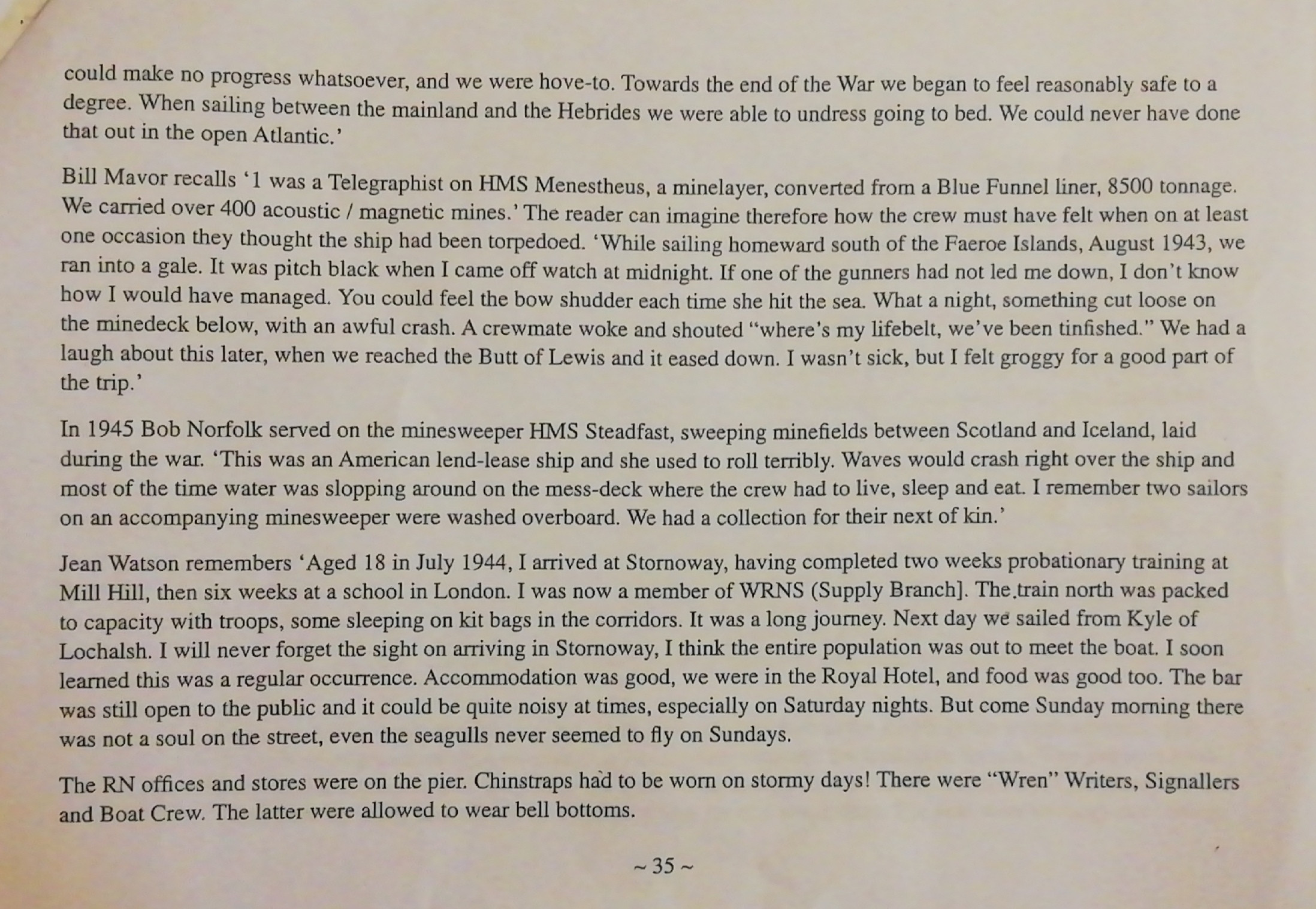 I was first able to contact George Smith (who was around 15-years-yonger than Arthur Gibson) probably around 2009, and he explained to me that each Flotilla (of 5 ships) in the RNPG had one vessel designated for ‘hazardous duties’ – and the HMS Beaumaris Castle was that ship. This meant the crew were responsible for transporting highly sensitive military communications, acting as armed guardsmen at military installations on land, and deploying in unusual or dangerous situations. This is why this crew was ordered to climb the central mountain of St Kilda during late November, 1942, retrieve a number of dead bodies of allied personnel killed in an accident involving an aeroplane crash. For some reason, the British government has been determined to ‘censor’ this episode out of the ‘official’ War Records of the men who participated in this difficult extraction. George Smith once spent an hour recalling his memories of this operation during one of his many Sunday-morning (long-distance) telephone conversations with me. This information was then augmented by dozens of hand-written letters sent by George to myself – letters which I am still correlating and cataloguing, etc.