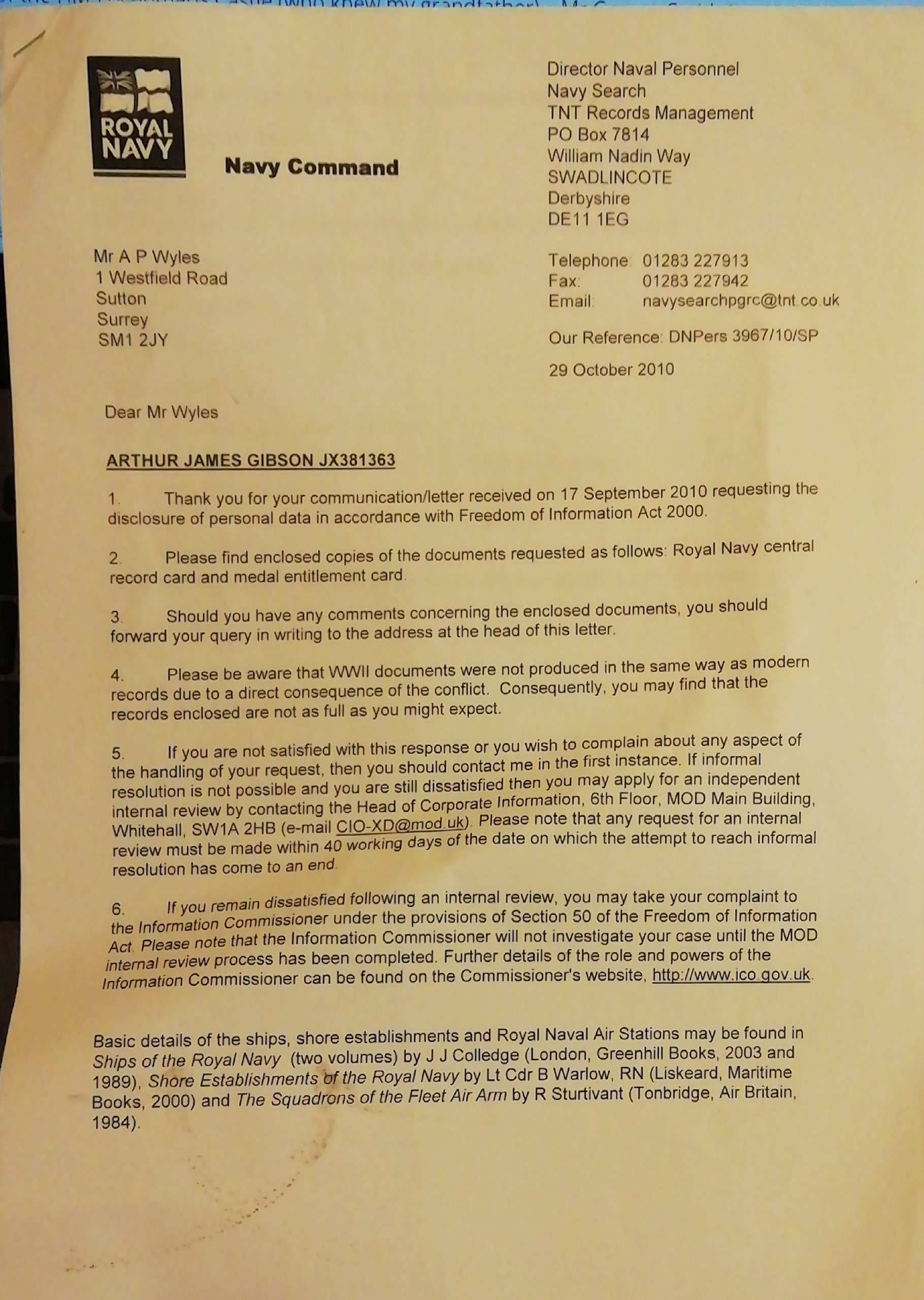 Omitted biographical data does not, in and of itself, necessarily denote or suggest that a ‘conspiracy’ is in action. After-all, as the Royal Navy Staff advise – we – the general public – are ‘free’ to carry-out our own research throughout all the many archives within which the British government chooses to store the country’s past military service information. Problems occur because these areas that serve (or have served) as ‘data-dumps’ have often been arbitrary, haphazard, disconnected and generally non-coordinated with one another. This is probably deliberate as such a non-centralised set-up is difficult to access by unauthorised personnel. This fact may appear to ‘hinder’ families seeking information on the military careers of their loved ones – but it is also a bureaucratic system designed to ‘protect’ the individual concerned and by extension – their families – should the wrong type of people come calling. Having acknowledged all of this, it is obvious that not all data will be a) found, and b) delivered to the fee-paying enquirer by the Royal Navy due to the set-up of this data-storage system.