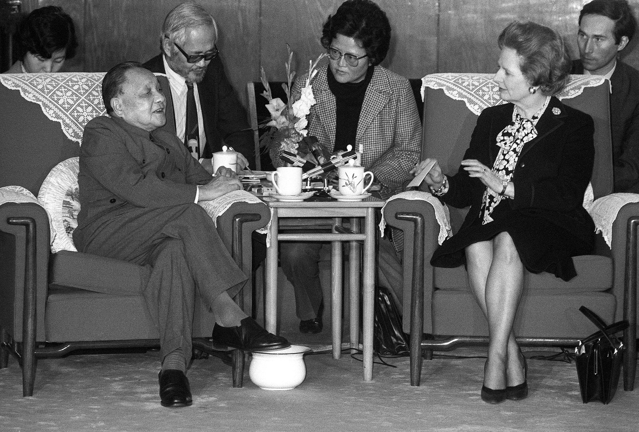 Margaret Thatcher met with Deng Xiaoping in Beijing in 1982 – and he was quite forceful with her. He reminded her that she was not in the UK and that she could not bully Chinese people in China like she does in the UK! (Thatcher would return home and immediately withdraw automatic British Citizenship for all Hong Kong people). Ever since the end of the First Opium War (1839-1842), the British have been pursuing a policy of crushing China’s independence through the mass importation of opium into the country. Hong Kong was ceded to the British in 1842, and ironically used as a staging point for British forces in 1857 during the Second Opium War (1856-1860). Britain did not extend British (liberal) democracy to Hong Kong throughout its history, and even the British Labour Government refused to extend the 1948 NHS and Welfare State to the small island (which would have relieved the tremendous poverty and illness amongst the Chinese population). White colonial Staff and other British Europeans living there received free (British provided) medical treatment and welfare – which withheld from ALL ethnic Chinese (although those in favour with the White Authorities might occasionally benefit from the machinations of this exclusive European club). By and large the ethnic Chinese were kept in-line by a White police colonial force (recruited in Britain) which carried guns (unlike their British counterparts). British colonial police like those who served in Burma (such as the lying Trotskyite George Orwell) were renowned for their brutality. The ethnic Chinese population living on the island of Hong Kong, the Kowloon Peninsular and the New Territories were ruthlessly exploited by the White, British Authorities which outlawed unions and forbid ALL and ANY type of protest. Any pro-China protests were quickly snuffed-out by the British police arresting, imprisoning or departing the ethnic Chinese people involved. Ethnic Chinese people were often tortured by the British police – but no one wants to hear this side of British rule… Under the British, it was ‘illegal’ to own or fly the Mainland Chinese Red Flag. The British had also ‘banned’ the Communist Party on the island. As the British did not allow elections for most of Hong Kong’s history, nobody cared to much. British rule of Hong Kong was premised upon the principle of controlling the ethnic Chinese population through ‘limiting’ its political freedom. Conforming to Eurocentric cultural standards was the only option, as was converting to Christianity. The ethnic Chinese population was made to pay for absolutely everything, a situation that was dramatically ended in 1997 – when Hong Kong returned to Mainland Chinese Sovereign control. When Thatcher attempted a ‘sabre-rattling’ in Beijing (still high on her victory in the Falklands) – Deng Xiaoping cut her short and said that Hong Kong could be liberated by the PLA in under a day if he so chose to give the order (particularly if the British Authrities in Hong Kong allowed and encouraged any large-scale anti-China demonstrations – which would be viewed as ‘fabricated’ and against the interests of good social order). After this meeting with Deng Xiaoping, Thatcher was so stunned by his strength of character and lack of fear that she later fell down the steps on her way out… This is what happens when White racists are stripped of all their power and are forced to meet their former victims on an equal political footing!