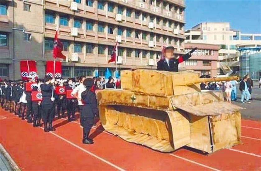 These young ‘Chinese’ people are truly the victims of US racism and the white-washing of history! Such is the price of US ignorance and imperialism – and the stupidity of their lackeys around the world! Senior staff at the Middle-School concerned – offered their ‘resignations’ following complaints from Germany and Isarel. The Taiwanese people should learn from this episode of Western manipulation and throw-off this US domination! These teenage ‘Chinese’ people are the victims of Western racism. They must return to the safety of the loving embrace of the Chinese Motherland!