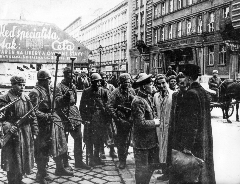 The Liberation of Slovakia from its Fascist (German-controlled) Government began in March, 1945. The Bratislava-Brnovo Operation began in March, involving Units of the 7th Guards Army of the 2nd Ukrainian Front – which reached the approaches to the capital of Slovakia on April 1st. The assault on the city lasted two days. The main blow was struck by the adjacent flanks of the 53rd and 7th Guards Armies, supported by the 1st Guards Cavalry Mechanized Group, the Danube Military Flotilla and the 5th Air Army. On April 4th – 18:00 hrs – Soviet troops completely cleared Bratislava of the enemy, as evidenced by the declassified combat log of the 7th Guards Army. In a short time, the populace was fed, clothed and medically treated whilst food was brought in from the USSR and distributed. Red Army soldiers then helped in the rebuilding of the country.