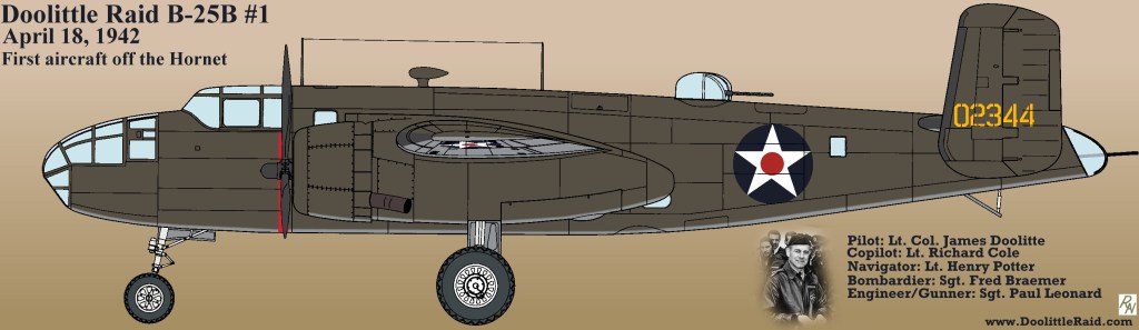 The US followed Churchill’s example and launched the ‘Doolittle Raid’ on Tokyo (Mainland Japan), which took place on the 18th of April, 1942. This raid comprised of 16 B-25B Mitchell medium bombers – which were launched without fighter escort from the U.S. Navy’s aircraft carrier USS Hornet from deep in the Western Pacific Ocean. Each bomber comprised of 5 crewmen – with the raid itself led by Lt. Col. James H. Doolittle – hence its name. Fifteen bombers were destroyed (crashing in and around geographical China) – with one landing in the USSR (this crew was safely returned to the US lines). The Japanese captured eight of these downed US airmen in China – where they were held and tried. John Dower – in his magnificent (1987) book entitled ‘War Without Mercy’ (which records US War Crimes committed during the Pacific War 1941-1945), states (Pages 48-: