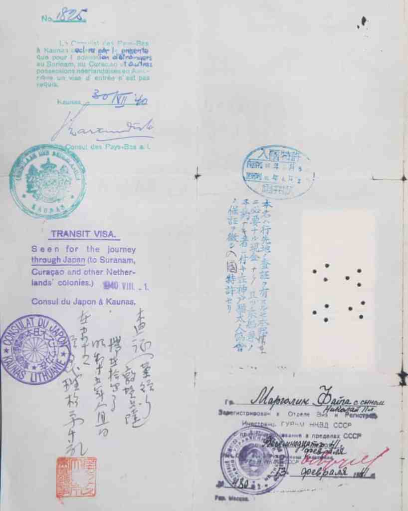 Refugees who received Visas crossed the Soviet border and travelled through the USSR to Vladivostok, where they boarded Japanese steamers and went to Japan. Most of them were sent by the Japanese to Shanghai, where they survived the war. Some left for other countries in the Pacific region or remained in Japan. In the Kaunas Sugihara Museum – a two-story mansion of the former Japanese Consulate – a document unprecedented in world diplomacy is on display: its right half is occupied by an explanation of the uselessness of a Visa to enter the island of Curacao signed by Zwartendijk, and on the left half is a Japanese transit Visa signed by Sugihara. Also in the corner are the stamps of the Ministry of Foreign Affairs of the Lithuanian SSR and the NKVD of the USSR (by that time Lithuania had already become a Soviet Socialist Republic). Officials from the NKVD ensured that all the transiting Jewish people were looked after whilst in the USSR – whilst special NKVD troops ensured their safety from any external attack ordered by Nazi Germany. Again, with the demonisation of Soviet history – many Zionist accounts omit these inconvenient facts.