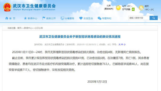 On the 12th, the Wuhan Municipal Health Commission issued a notice again, stating that between 0-24:00 on January 11, there were no new cases of pneumonia caused by the new coronavirus in Wuhan, 4 cases were cured and discharged, and no new deaths had been reported.