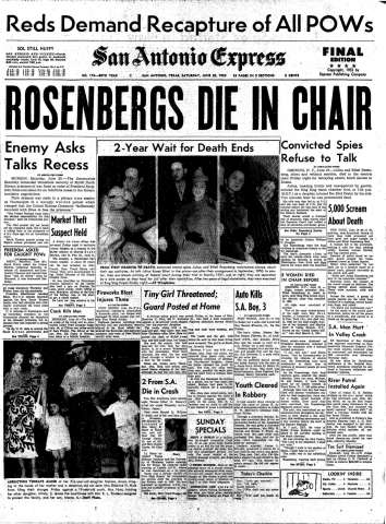 On June 19th, 1953 (as the US military was experiencing endless battlefield defeats in North Korea), the Jewish-American couple – Julius and Ethel Rosenberg – were put to death in the electric chair by the US government after being accused of ‘spying’ for the Soviet Union. Although the evidence was sparse and essentially trumped-up, the US government wanted to send a terroristic and murderous ‘threat’ to any US citizen deciding to investigate (or support) the Communist Cause. The Rosenbergs were offered a commutation of their death sentences to life imprisonment if they publicly ‘admitted’ their guilt and ‘renounced’ their support for the Communist Cause – both steadfastly refused. The US government then took their lives during the McCarthy-era (in the name of ‘freedom of thought’) whilst accusing the USSR of being an ‘oppressive’ regime.