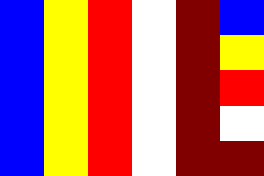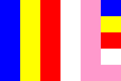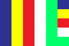 The concept of a multi-coloured Buddhist flag was designed in 1880 by Henry Steyr Alcott – a retired American army colonel. He probably got the idea from the five-coloured’ Daoist flag – the defining concept of which associated a distinct colour to a geographical location. This concept of colour-coding for four ‘cardinal’ compass-points and the theoretical ‘centre’ dates back to at least the Zhou Dynasty. On April 17th, 1885, this multicoloured Buddhist flag was officially adopted in Sou Lanka as an ‘International’ symbol representing faith and peace for the first time. The World Buddhist Friendship Association was established in Sri Lanka in 1951, and the Buddhist flag was designated as the preferred flag, which was gradually recognized by Buddhist believers all over the world and became the common symbol of international Buddhism.
