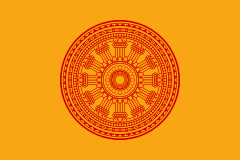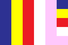The concept of a multi-coloured Buddhist flag was designed in 1880 by Henry Steyr Alcott – a retired American army colonel. He probably got the idea from the five-coloured’ Daoist flag – the defining concept of which associated a distinct colour to a geographical location. This concept of colour-coding for four ‘cardinal’ compass-points and the theoretical ‘centre’ dates back to at least the Zhou Dynasty. On April 17th, 1885, this multicoloured Buddhist flag was officially adopted in Sou Lanka as an ‘International’ symbol representing faith and peace for the first time. The World Buddhist Friendship Association was established in Sri Lanka in 1951, and the Buddhist flag was designated as the preferred flag, which was gradually recognized by Buddhist believers all over the world and became the common symbol of international Buddhism.