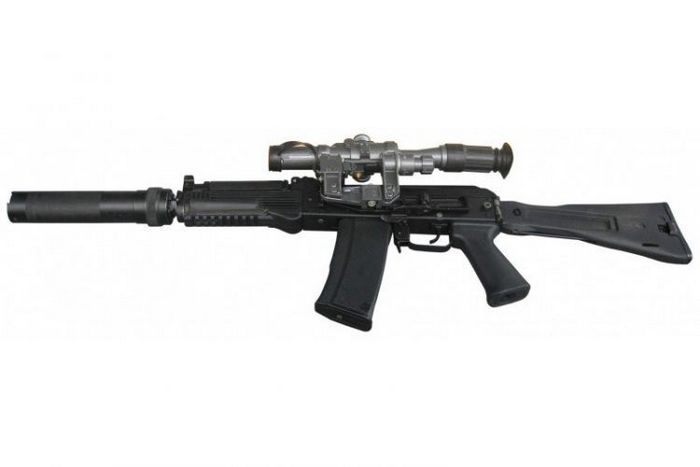 The assault rifle was created as a silent, flameless shooting complex for covert shooting. It uses subsonic cartridges of 9 × 39 mm calibre, together with a silencer, making the shot almost inaudible. Magazine capacity – 20 rounds.