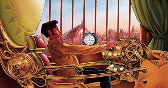 ‘Certainly,’ said the Time Traveller, stooping to light a spill at the fire. Then he turned, lighting his pipe, to look at the Psychologist’s face. (The Psychologist, to show that he was not unhinged, helped himself to a cigar and tried to light it uncut.) ‘What is more, I have a big machine nearly finished in there’—he indicated the laboratory—’and when that is put together I mean to have a journey on my own account.’