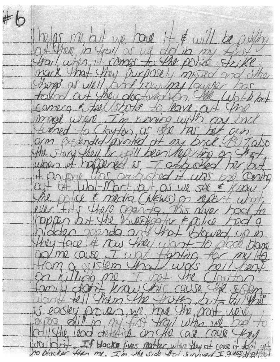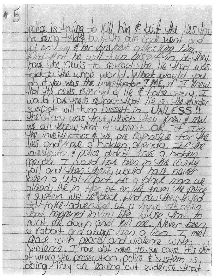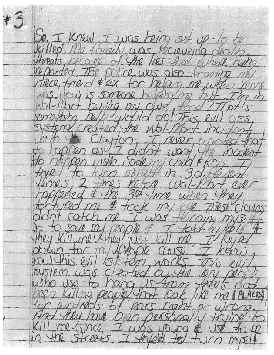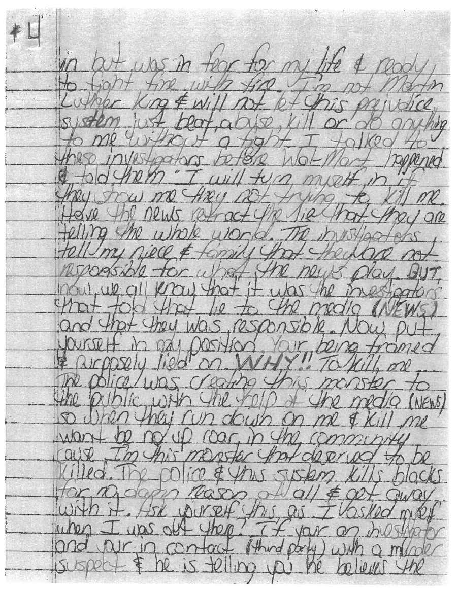 Unbeknownst to (Sgt) Debra Clayton, however, Markeith Loyd was prepared for such a possible ‘ambush’ from the Orlando PD and was wearing a bullet-proof vest – which absorbed the incoming rounds and saved his life! Markeith Loyd, acting in accordance with the US laws allowing for carrying concealed fire-arms that can be used in ‘self-defence’ then ‘drew’ his personal weapon and returned ‘fire’ – ‘killing’ (Sgt) Debra Clayton in a hail of bullets that impacted across her torso. Although the legal situating is clear – that (Sgt) Debra Clayton unlawfully drew her weapon off-duty and attempted to kill an unarmed Markeith Loyd – the US judiciary wants to charge Markeith Loyd with ‘murder’ and inflict the ‘death penalty’ for what amounts to a clear-cut case of ‘self-defence’. As (Sgt) Debra Clayton dutifully carried-out the anti-Black orders of the White Police Department she worked for – the powers at be post-humously ‘promoted’ her to the rank of ‘Lieutenant’ – so that her surviving family can receive a greater amount in compensation and pension pay-outs. In the meantime, the film-footage of the Orlando Police Department ‘beating’ a surrendering and unarmed Markeith Loyd to a pulp is currently easy to access on the internet. The implication is clear that Orland PD wanted to end the life of this Black man who has dared to stand-up to their White racism and their White violence! The following is a copy of Markrith Loyd’s hand-written letter to the US media within which he explains the situation he finds himself in: