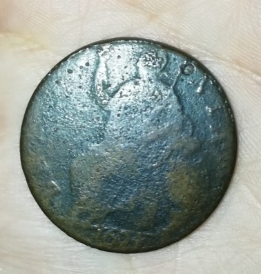 My mother – Diane Wyles (nee Gibson) – along with her family, were evacuated fro Lewisham in the East End of London around 1942 following the ‘Blitz’ which saw the Gibson family home totally destroyed! As the Gibson’s possessed a relative living in the Forest Hill area of Oxford – a rural village – they were sent there. Eventually, they secured a lovely house in Milton Crescent – a locale which is associated with the poet ‘John Milton’ who used to frequent the area and like to sit upon a local stone to ‘think’ profound thoughts that he would later write down. The furthest ends of the back gardens of Milton Crescent used to be an established pathway across farmland used by all sorts of people as they traversed the area. It was here that my mother and her father – Arthur Gibson – were out digging one-day (during 1960) in a part of the garden reserved for the family’s small but productive flock of chickens, when my mother noticed a round metal object lifted out of the ground my her father’s shovel! After wiping the mud away, it was obvious it was an old coin as the a date of ‘1694’ could be discerned. A few days later, Arthur Gibson was able to take the coin to the Ashmolean Museum situated in the centre of Oxford – where the resident expert confirmed it is a genuine ‘William and Mary Half-Penny Piece’ constructed of tin and copper alloy and dated to the year ‘1694’.