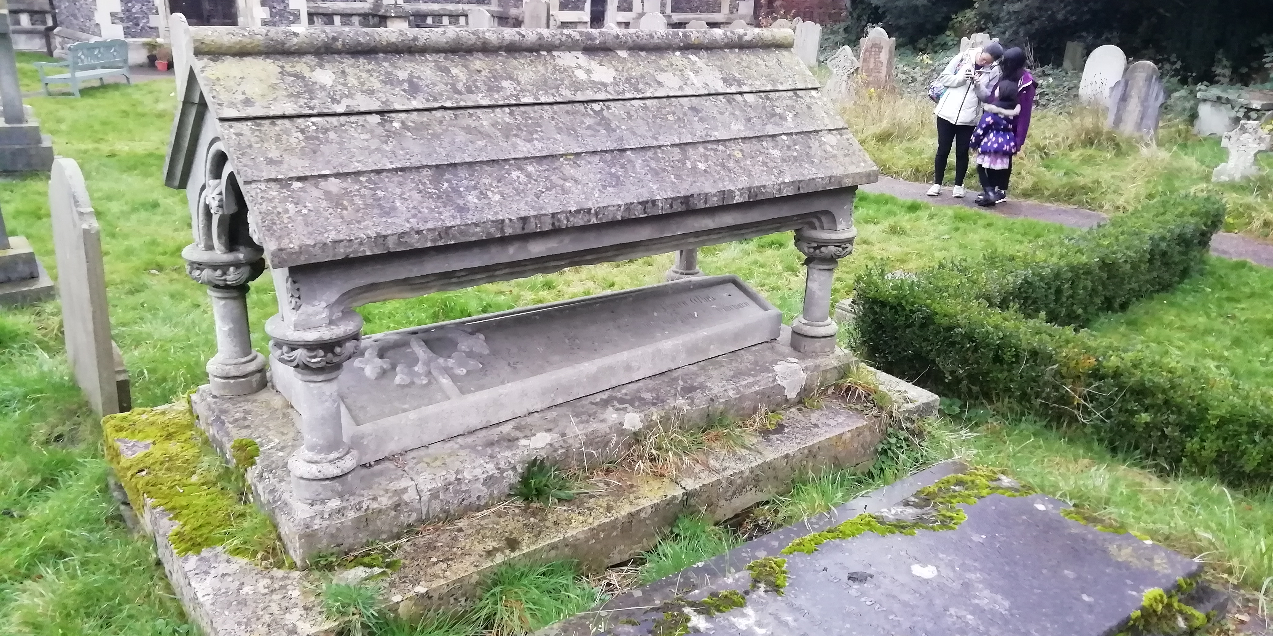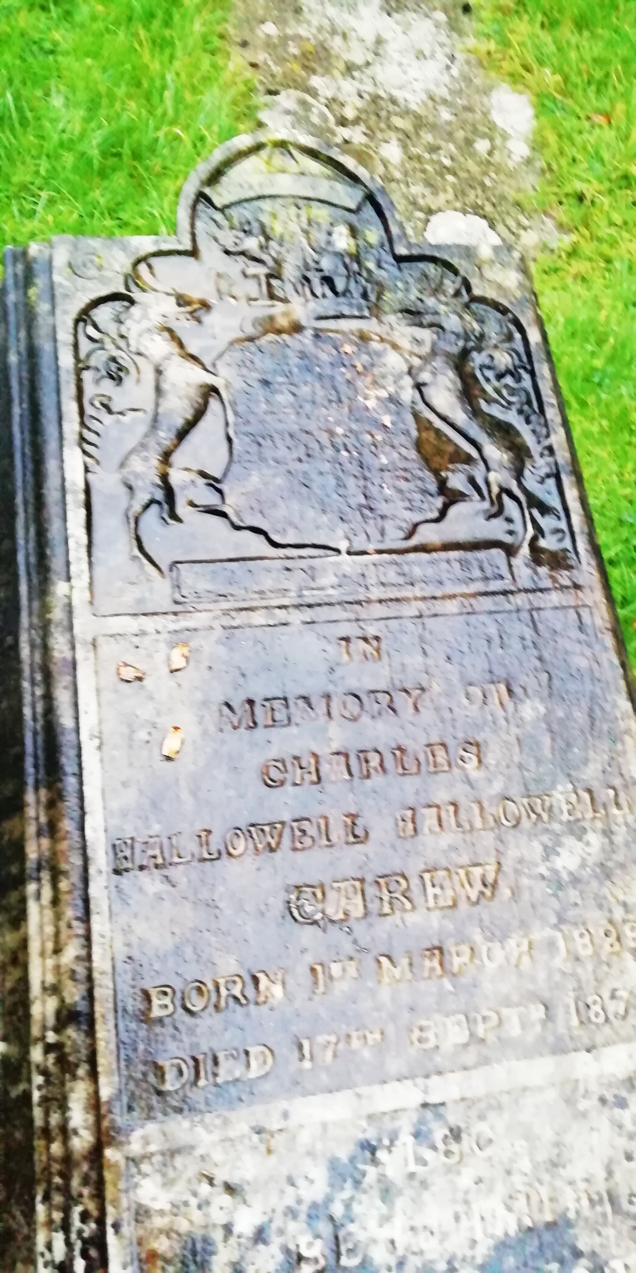 Beddington Park is also known as ‘Carew Manor’ and once was a very large and opulent self-contained community which saw hundreds of workers employed throughout the estate. These workers were well-paid, provided with good housing, medical care and schooling for their children (the school existed within the estate itself and was regulated by the Lord of the Manor). When the workers were injured, disabled or when they were too old to work, they were allowed to retire to a self-contained elderly section of the estate where younger people were employed to meet their needs! This type of care exhibited by a privileged employer often generated levels of intense loyalty amongst his or her workers and it is evident that the Lord of the Manor allowed his workers to be buried in the same Church-yard as himself and his relatives! Around the Church grounds are a number of low brick and flint walls dating from at least the 17th century. The first grave featured second in the photographs listed below (directly adjacent to the Church building) is that of Charles Hallowell Carew (1805-1848) – Captain in Her Majesty’s Royal Navy and ‘Lord of the Manor’ at Beddington Park – and possibly of his wife – Mary Maxwell. He was the son of Sir Benjamin Hallowell-Carew (1761-1834) and Ann Inglefield (1776-1850). He married Mary Maxwell, daughter of Admiral Sir Murray Maxwell and Grace Callander Waugh, on the 12th of June 1828 at St George’s Church, Hanover Square, London, England. He was promoted to Captain on the 17th of April 1827.He died in 1848 at Beddington Park, Croyden, Surrey, England. Apparently, he designed and ran the village on his land like a self-contained ship at sea! The second grave featured in the photographs below, possesses an inscription that is far too weather-worn to decipher. It remind me of an ark!