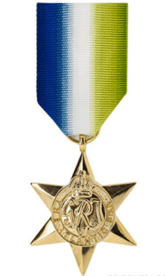 Awarded for service in WWII, the Atlantic Star is a campaign medal of the British Commonwealth. The Star was to commemorate the Battle of the Atlantic which took place between 3rd September, 1939 and 8th May, 1945, while Allied convoys transporting goods and valuables from America and the colonies were under attack by German U-boats. The medal was granted for ‘six months’ afloat in the Atlantic, Home Waters, parts of the South Atlantic and Arctic Convoys to Russia. Ribbon: Shaded and watered stripes of blue, white and green to represent the Atlantic. Worn with the blue edge furthest from the left shoulder. Awarded to personnel of the Royal Navy and Merchant Navy, provided they had earned the 1939-45 Star for six months service in operational areas. The locations and areas differ from the Royal Navy and Merchant Navy to qualify for this campaign medal. Special conditions apply governing this award for those Naval personnel entering service less than six months before the end of the qualifying period, provided it was the last operational theatre that they would serve. The Atlantic Star was also awarded to the R.A.F and Aircrew who took part in operations against the enemy at sea within the qualifying areas, subject to two months service in an operational unit. However, the 1939-1945 Star medal must also be earned by the recipient before commencing qualifying service for the Atlantic Star medal.