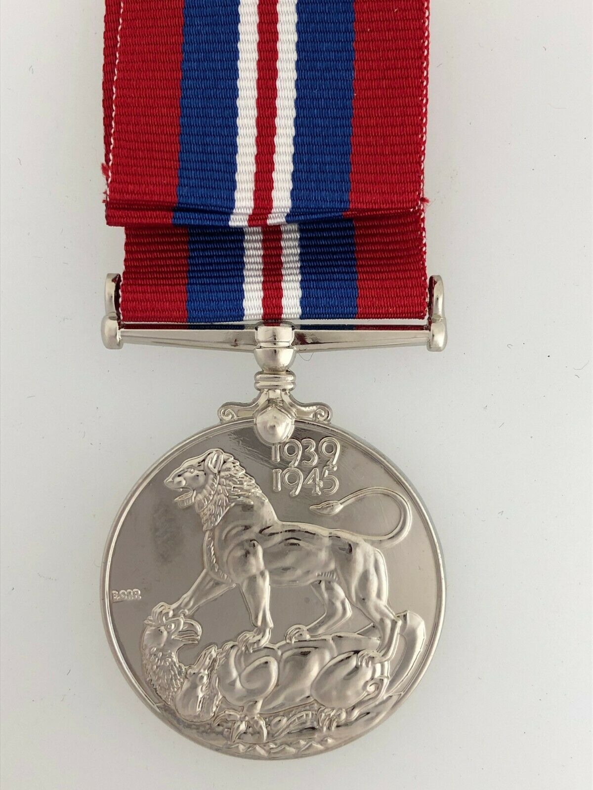 The War Medal 1939–1945 is a campaign medal which was instituted by the United Kingdom on 16th August 1945, for award to citizens of the British Commonwealth who had served full-time in the Armed Forces or the Merchant Navy for at least 28 days between 3rd September 1939 and 2nd September 1945.