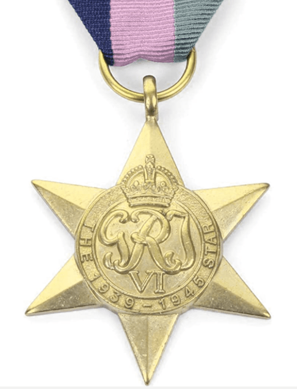 The 1939-1945 Star Medal, awarded to British Forces serving overseas during WWII. The 1939-45 Star Medal was introduced to reward the service of forces who served at least 180 days operational service overseas during WWII. Specifically, the 180 days must have been spent between the dates of 3rd September, 1939, and 8th May, 1945 (2nd September if spent in Far East). There are also some cases of special circumstances, where the medal was awarded for a single day’s service. The medal features the Royal cypher “GRI VI” on the front, supported by the text “THE 1939-1945 STAR” below, and the crown above. The ribbon displays equal stripes of red, light and dark blue, to represent the different arms of the armed forces.