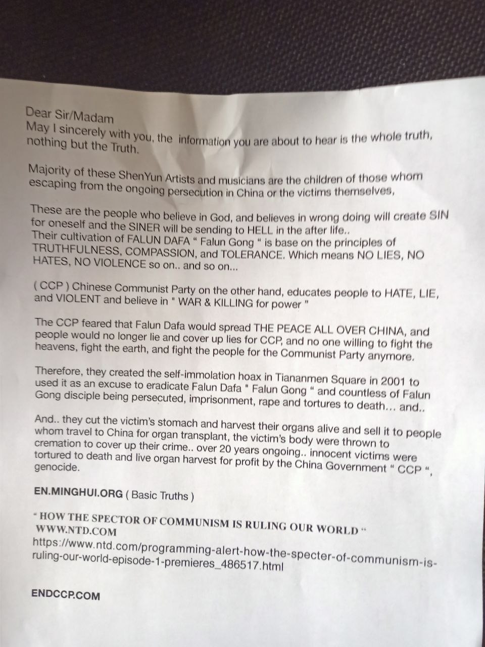 One particularly odious practice the Falun Gong Cult has resorted to is that of grown men waiting outside the UK’s schools and handing-out ‘racist’ anti-China literature to unsuspecting children at home time! What is worrying about this is that many of these schools are within the privatised ‘academy’ system – where children’s education has been ‘monetised’ – and the Falun Gong Cult is operating with the knowledge and permission of Head-Teachers! This arrangement protects these Falun Gong Cult members from any action from the police – as the school is a) ‘aware’ of their presence, and has b) granted ‘permission’ for this activity to take place under the false premise that the ‘racist’ leaflets are ‘educational’!