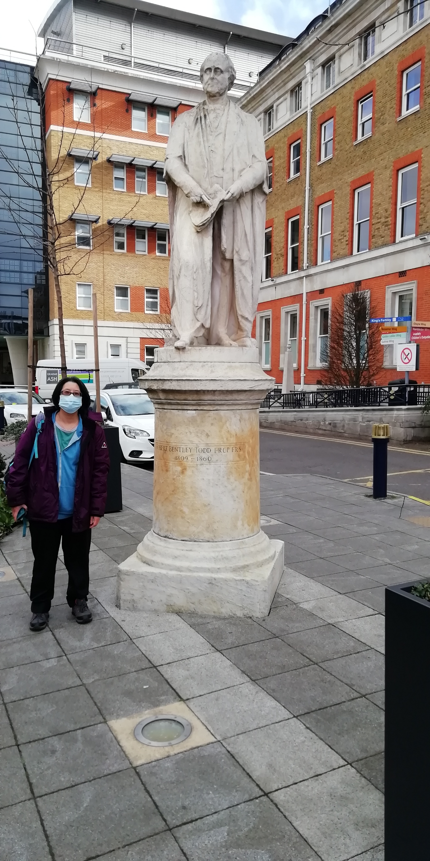 My partner – Gee – had just finished a 12-hour nightshift as an NHS Midwife, had quickly returned to Sutton to take the children to school and then returned to hospital to participate in a mandatory training exercise. The lack of a strong union in a rapidly privatising NHS has led to this kind of debilitating and exploitative work schedule. To make sure Gee was safe on the return journey – I travelled with her and waited whilst she attended her course – carrying-on my academic work through my ipad and ‘phone, etc. When back together we brought a coffee and a sandwich and then quickly looked around the historic building. In the true spirit of ‘Black Lives Matter. (#BLM) we checked all the statues for dodgy characters! Travel with us and enjoy these photographs and videos! For the record – Robert Bently Todd (1809-1860) – was a renowned Surgeon who DID NOT own slaves!