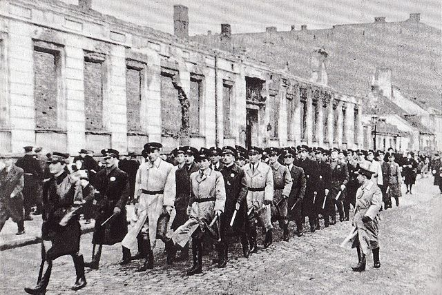 Jews were forced to assist with their own extermination by the Nazi Germans. Many formed auxiliary police units armed with a short baton, a hat and an arm-band. They were temporarily empowered to keep ‘Nazi German’ order in the ghetto, and to beat any Jew who stepped out of line or refused to toe the line. These Jewish units often assisted in the round-up, execution and ‘processing’ of the bodies of dead Jews after the Nazi Germans had carried-out the murders. Quite often, these men had to assist in the killing of their own family members. When working in the clearing of dead bodies from the floors of gas chambers – many Jewish workers would encounter the corpses of dead relatives. This physical and psychological abuse would go on for a few months before the Jewish volunteers would have themselves to submit to the very same process of extermination. Assisting the Nazi Germans often bought around three extra months of life for the individuals concerned. Describing this process is vital for understanding why the ideology of Nazism cannot be allowed to flourish once again in the world! Anyone of us could be a victim of this process!