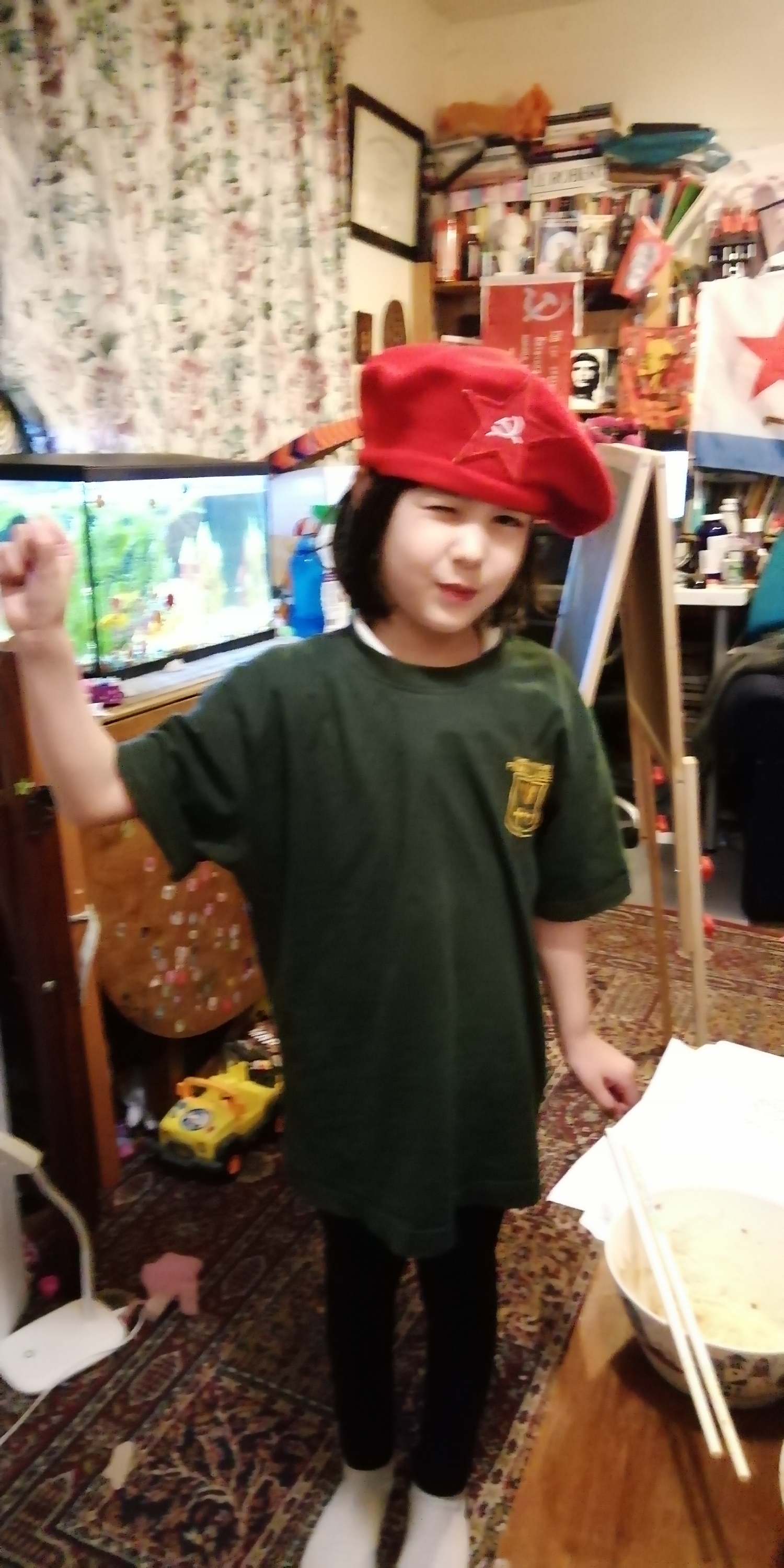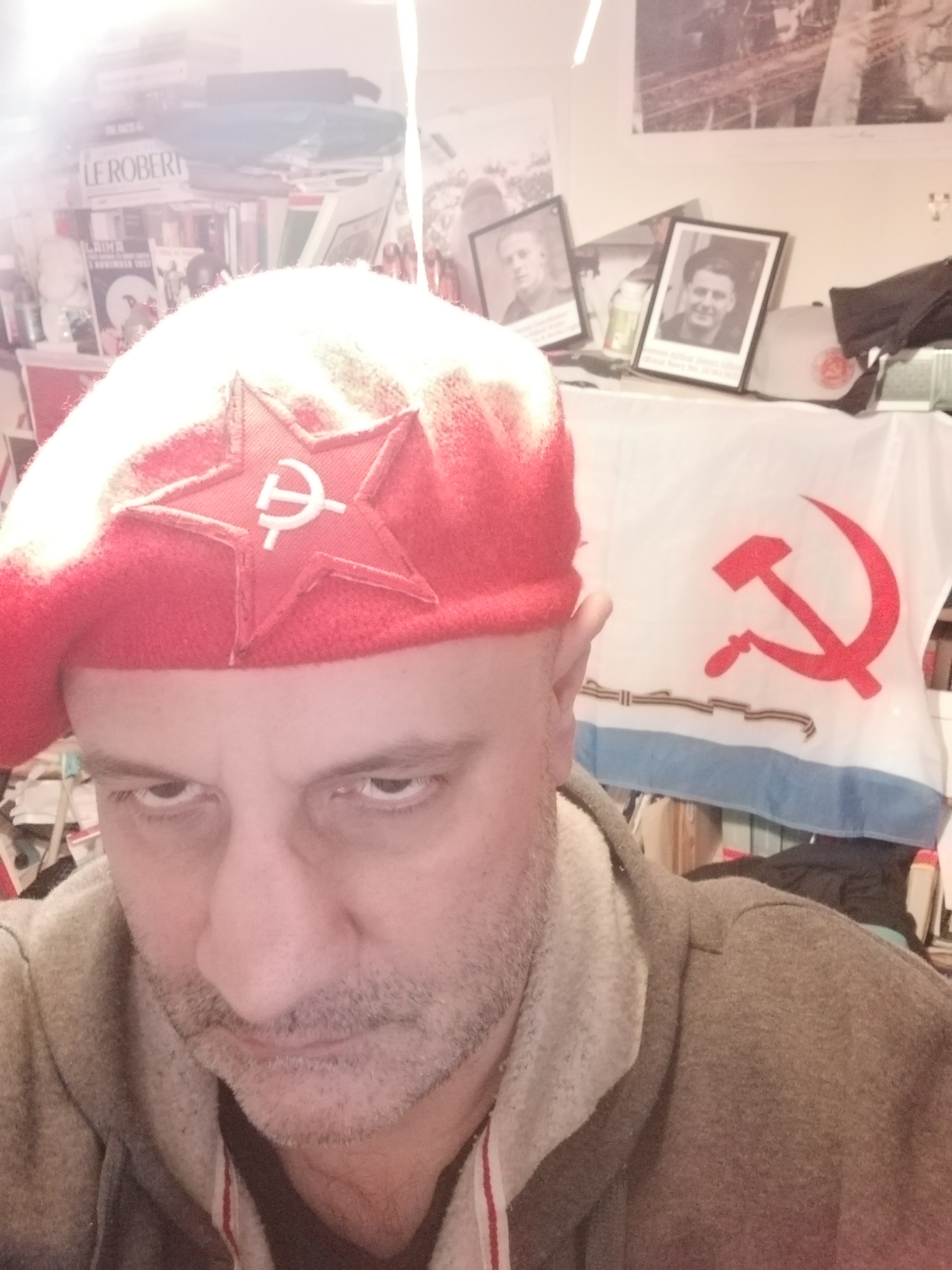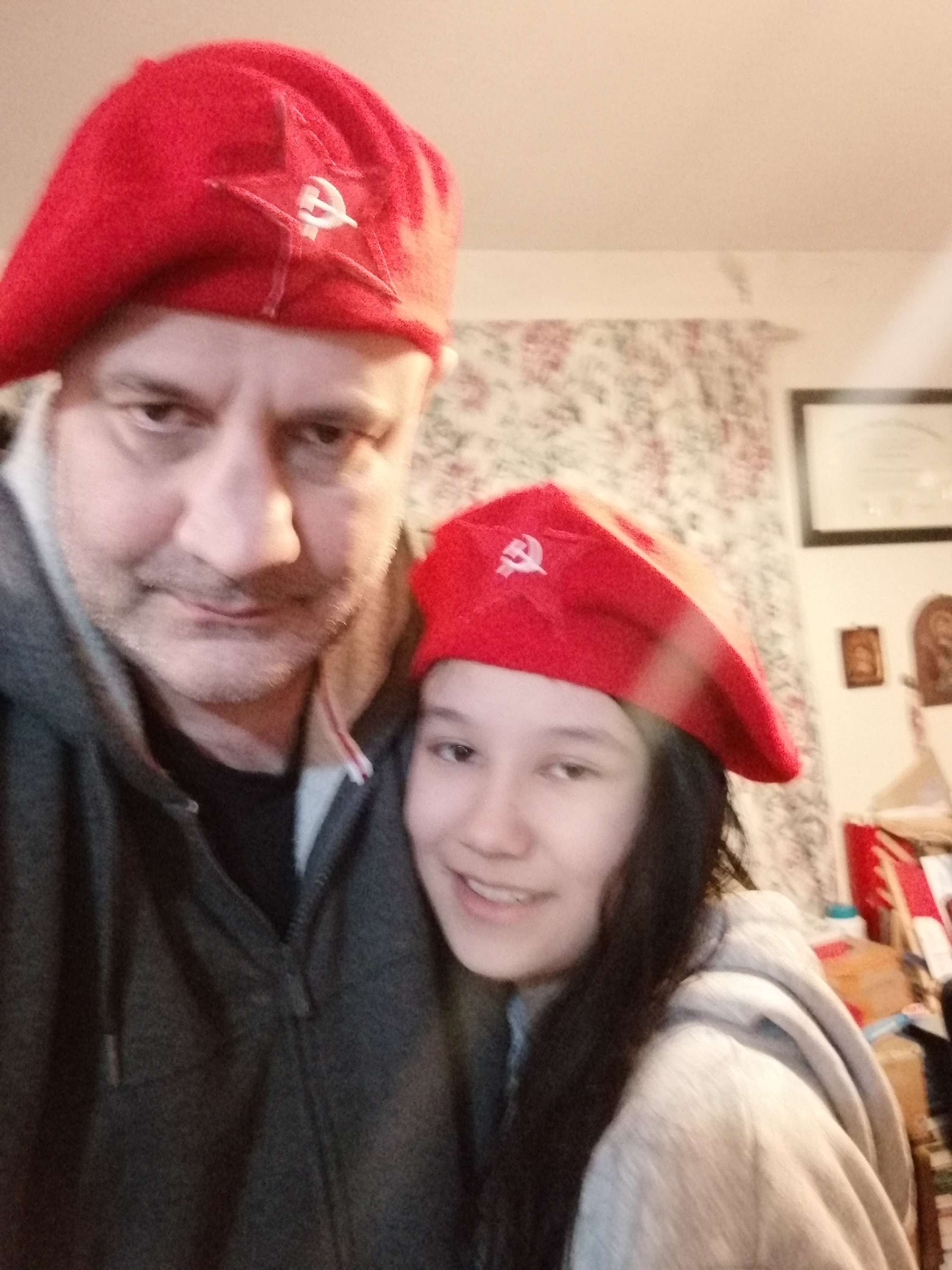 Around three-years ago, my wonderful mother – Diane Wyles – acquired a number of berets and hammer and sickle badges (she is an old Revolutionary with lots of contacts worldwide)! She wanted me and Gee to sow the badges on the Berets and create Revolutionary headgear that the whole family could wear. Well, Covid19 derailed that plan, but following the West taking the side of the Neo-Nazis Ukrainians, we thought NOW was the right time to carry-out this important work! I sat in front of the TV watching a scifi series for a couple of hours and carefully stitched each badge into place. Here are a number of pictures to record this event! Long Live the Soviet Union and the Working Class!