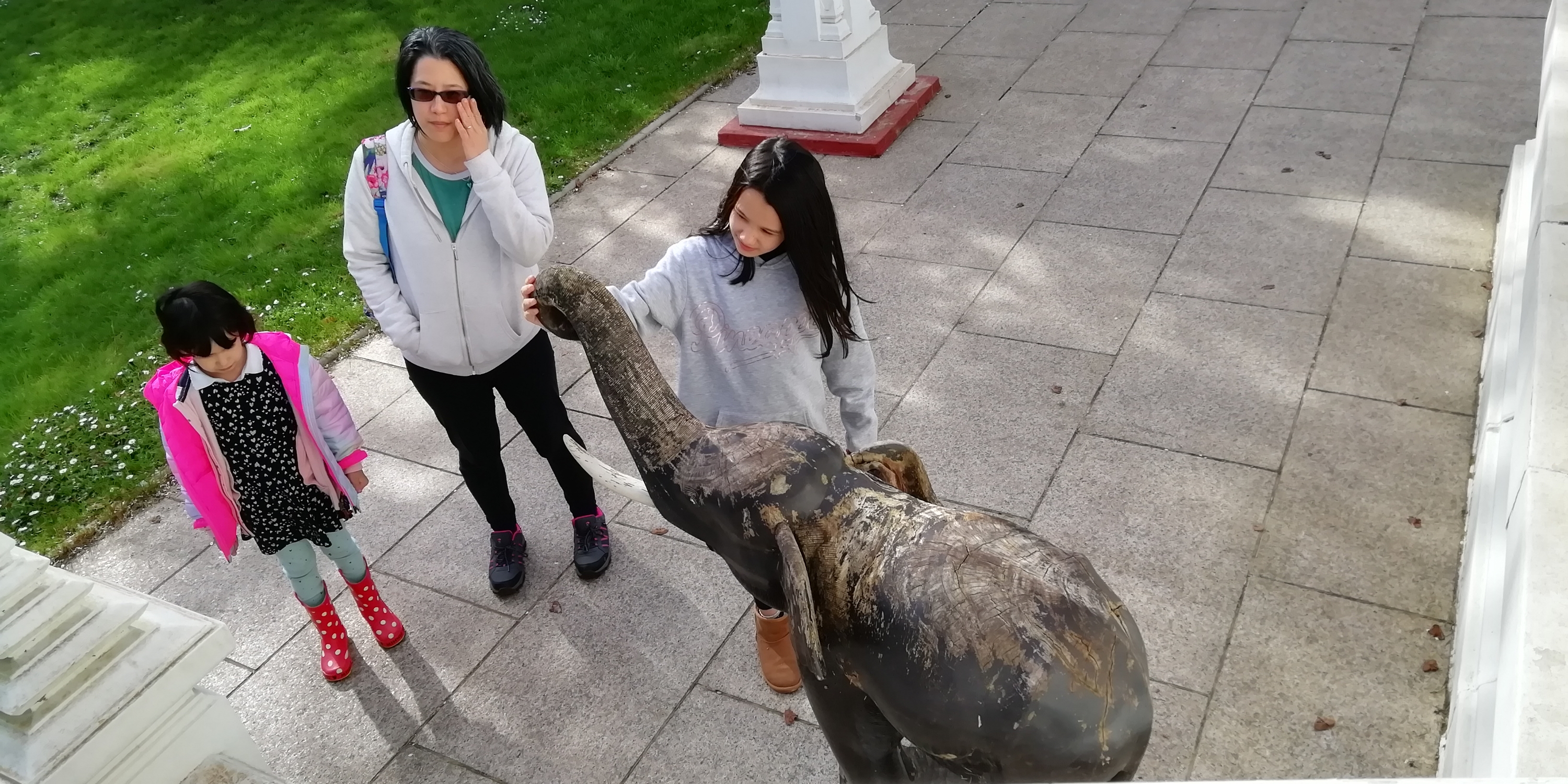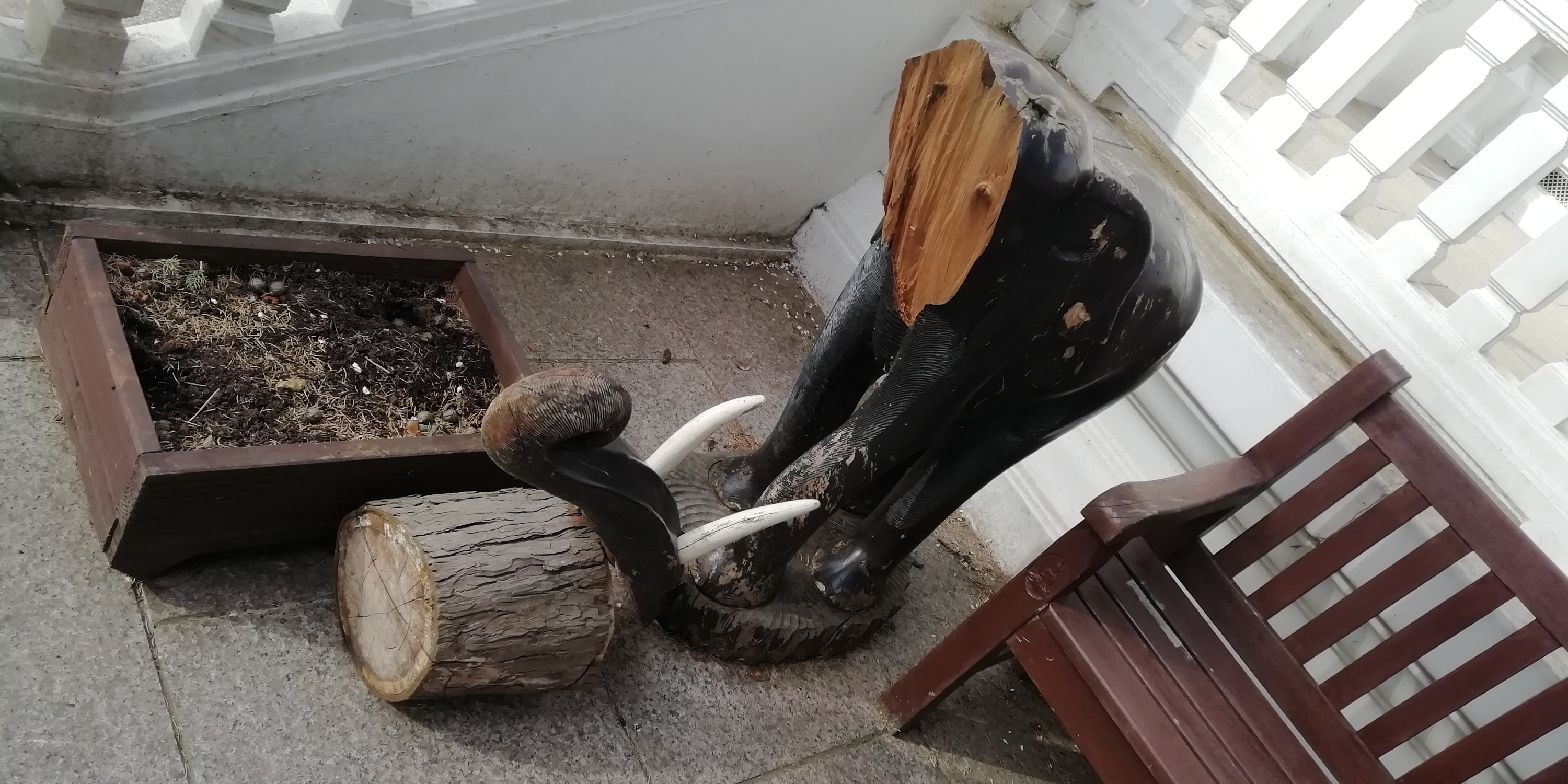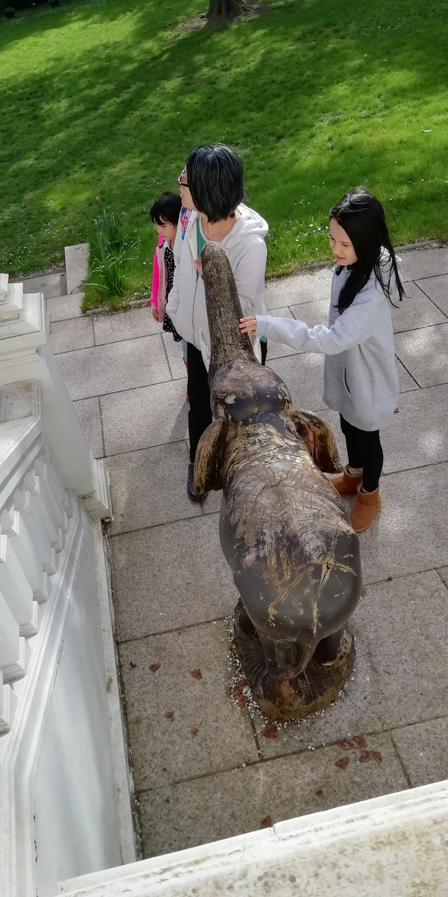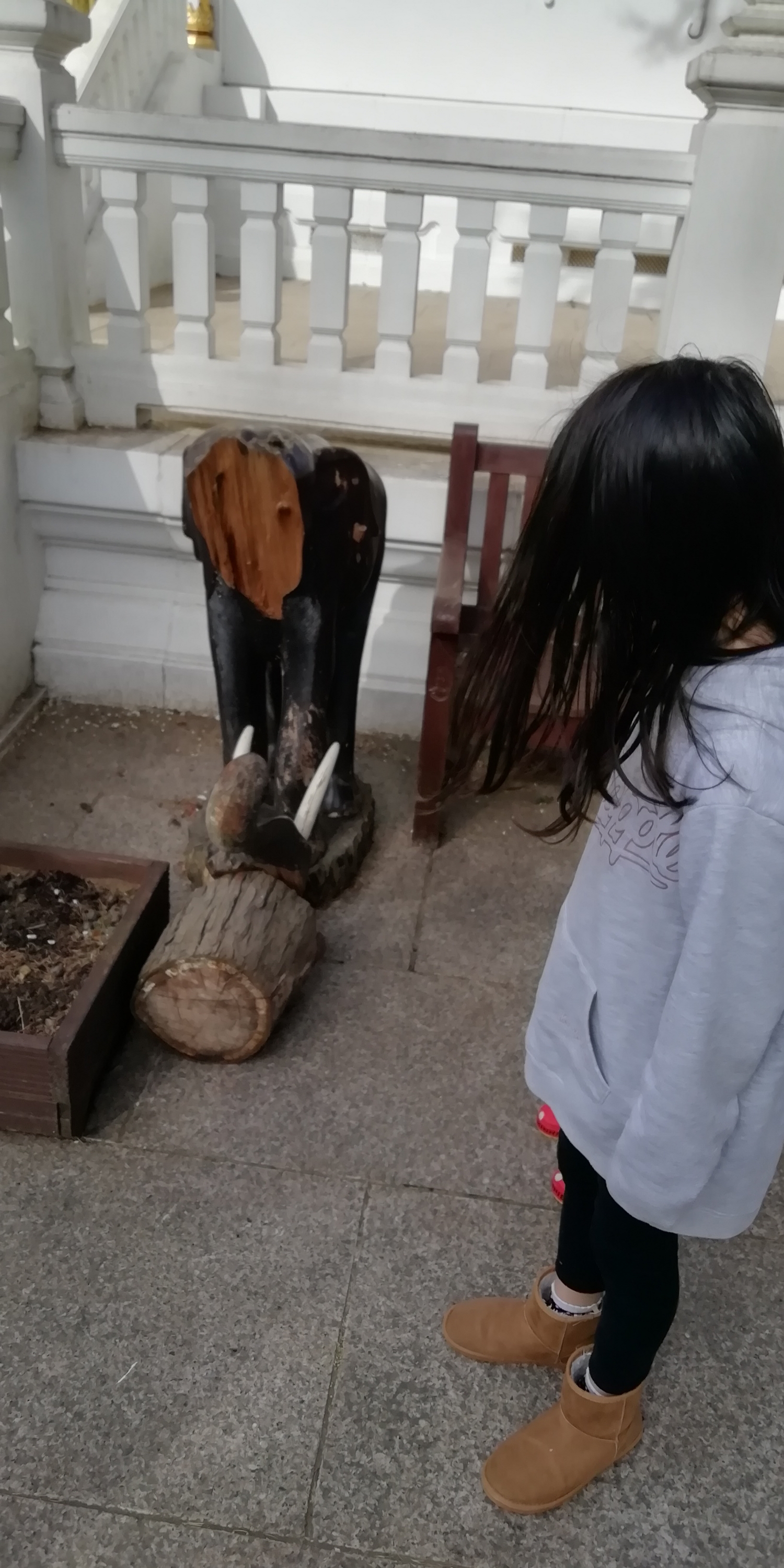 There are two stone elephants situated at the base of a set of stairs outside the Main Temple building at the Buddhapadipa Temple! The left-hand elephant is in one piece – but the elephant to the right has suffered damage in that the trunk and face has split-away! If anyone can repair this, please contact the Temple. Upon reflection I suspect children climbing the elephants have not helped matters over the years… The left-hand elephant nobly sustained our two children!