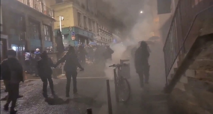 In Lyon, police use gas grenades to disperse protesters. Some French people are unhappy with the results of the presidential election, which declared Macron’s victory.