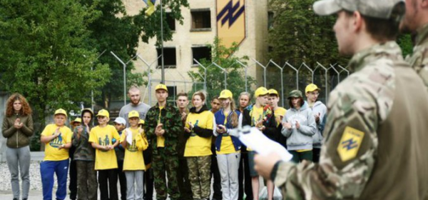 The Neo-Nazi battalion “Azov”, which opened a military camp for children – termed “Azovets” – situated near Kyiv, can boast of being a worthy replacement! Donetsk journalist Konstantin Dolgov published online a video recording of classes in the children’s camp being instructed in Hitlerite propaganda by representatives of the radical gang “Azov” – which the Kyiv media prefer to call a “Volunteer Battalion”.