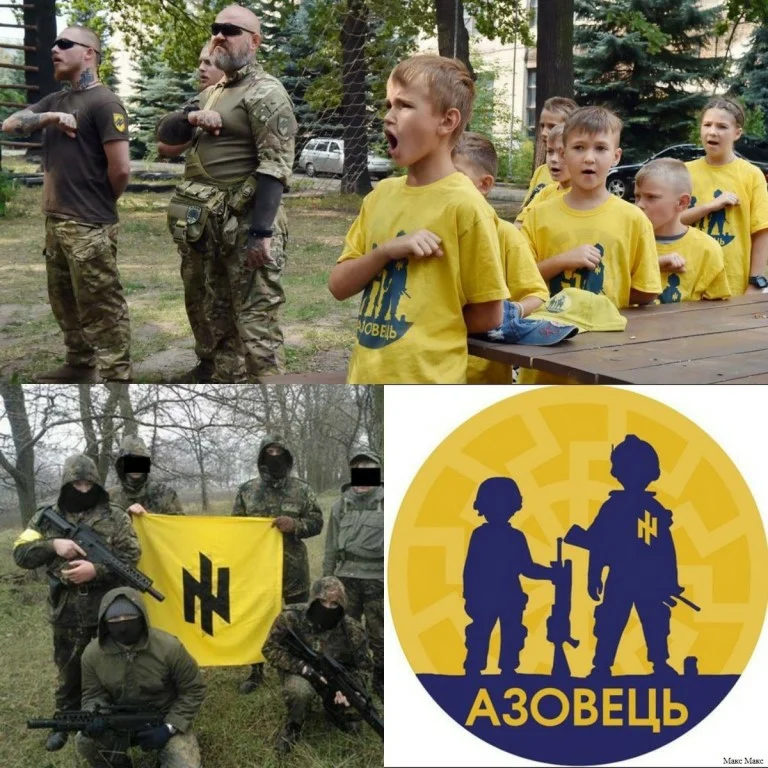 The Neo-Nazi battalion “Azov”, which opened a military camp for children – termed “Azovets” – situated near Kyiv, can boast of being a worthy replacement! Donetsk journalist Konstantin Dolgov (Константин Долгов) published online a video recording of classes in the children’s camp being instructed in Hitlerite propaganda by representatives of the radical gang “Azov” – which the Kyiv media prefer to call a “Volunteer Battalion”.