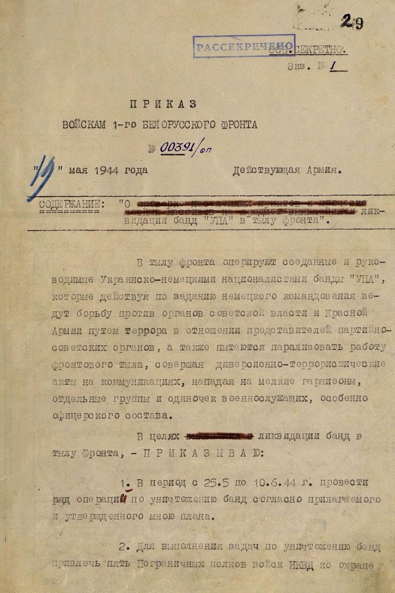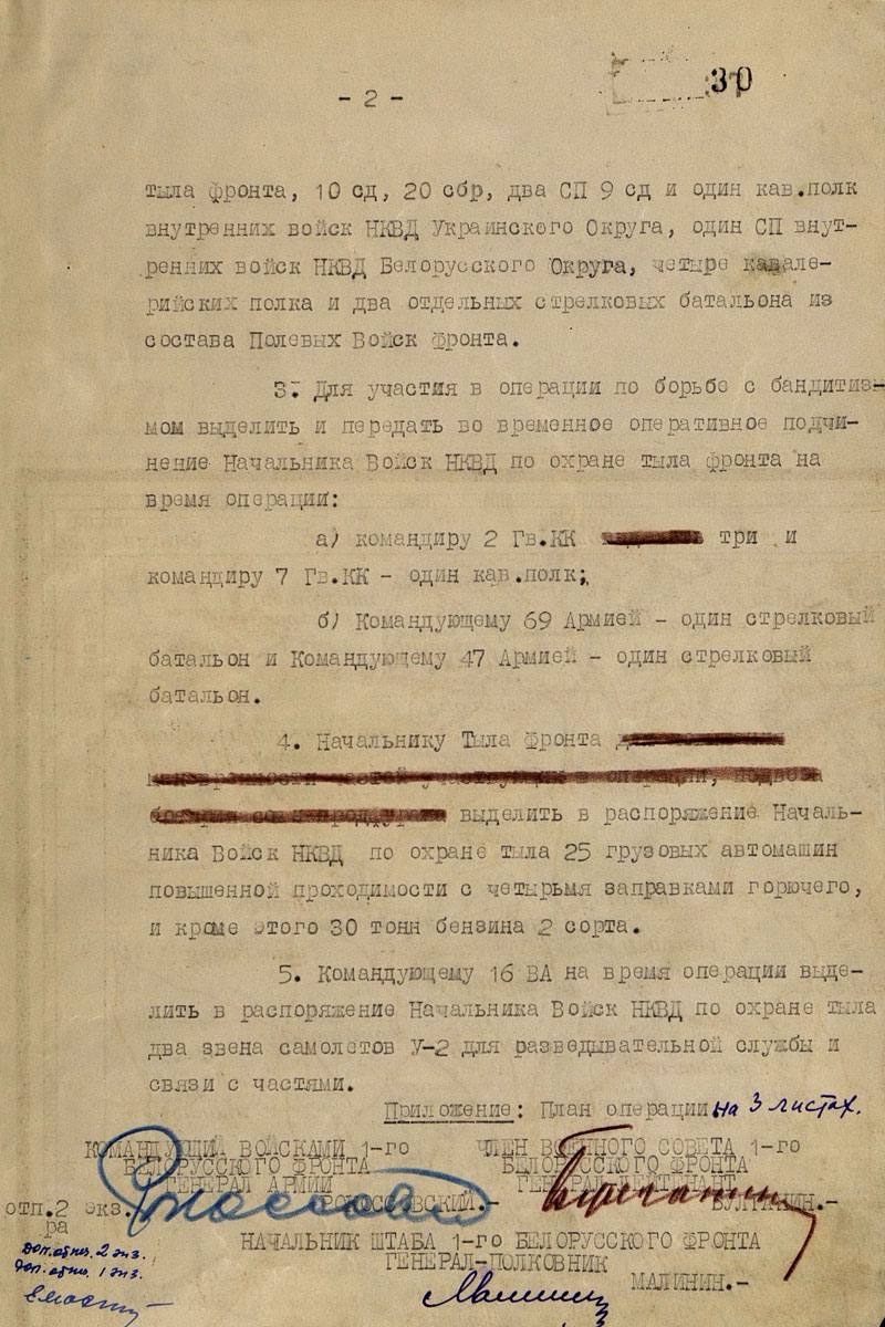 In order to eliminate the nationalist gangs in the rear of the 1st Belorussian Front, the commander of the front troops, General of the Army Konstantin Rokossovsky, ordered a number of special operations.