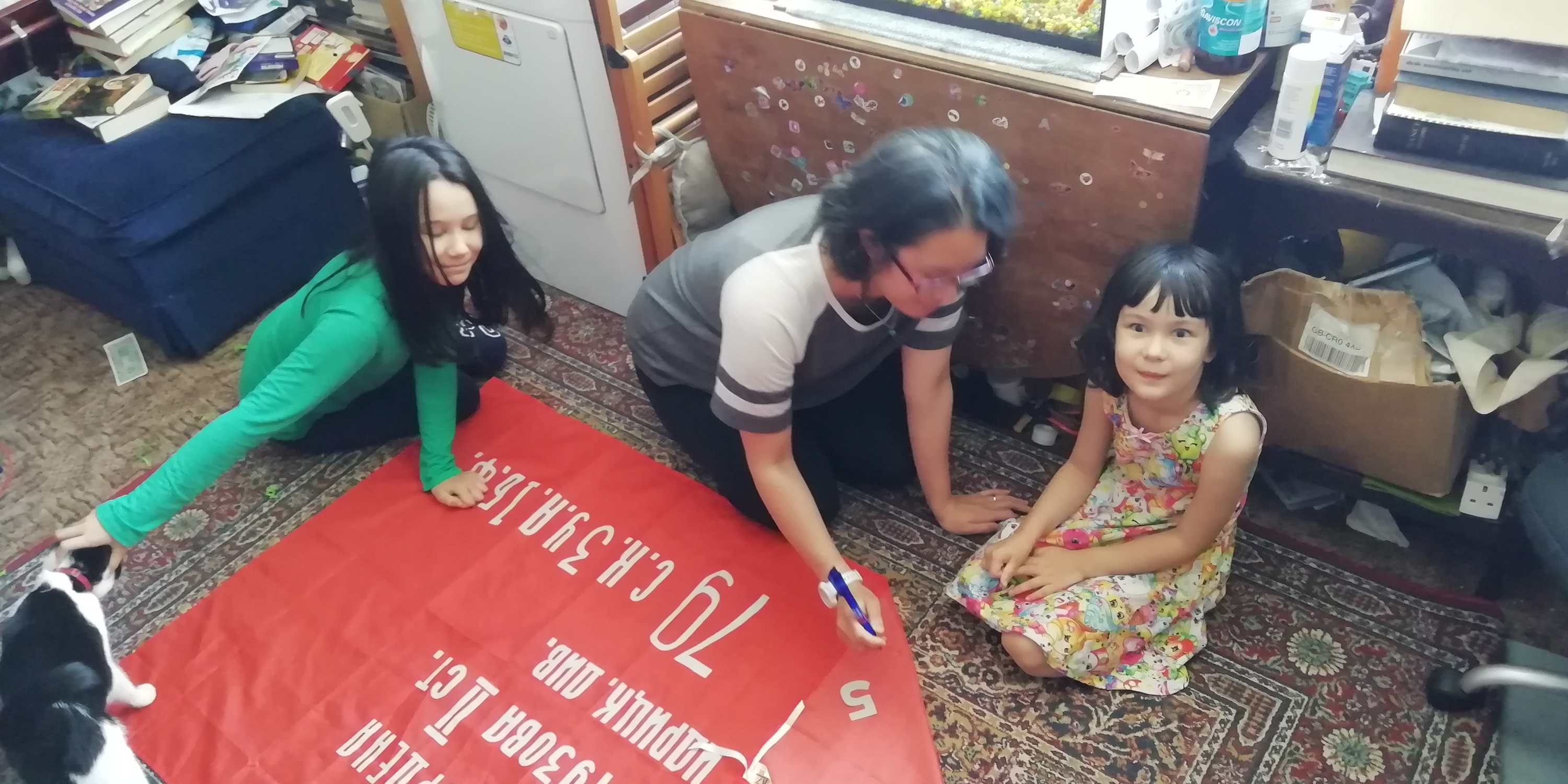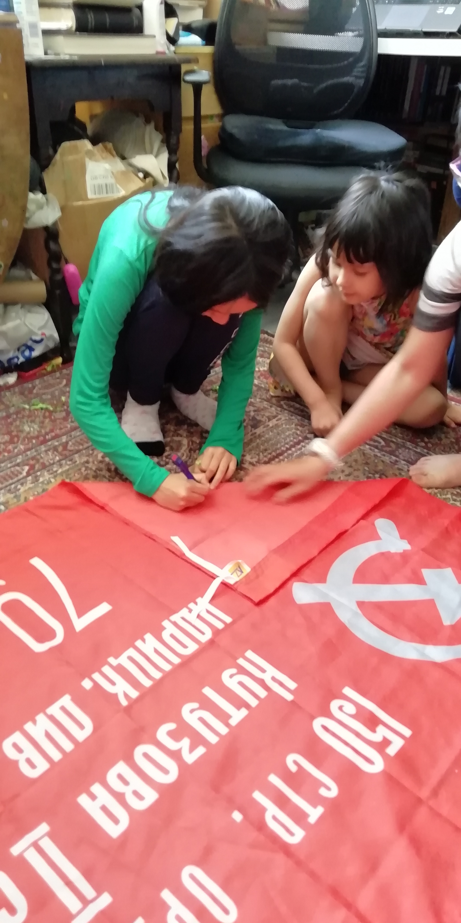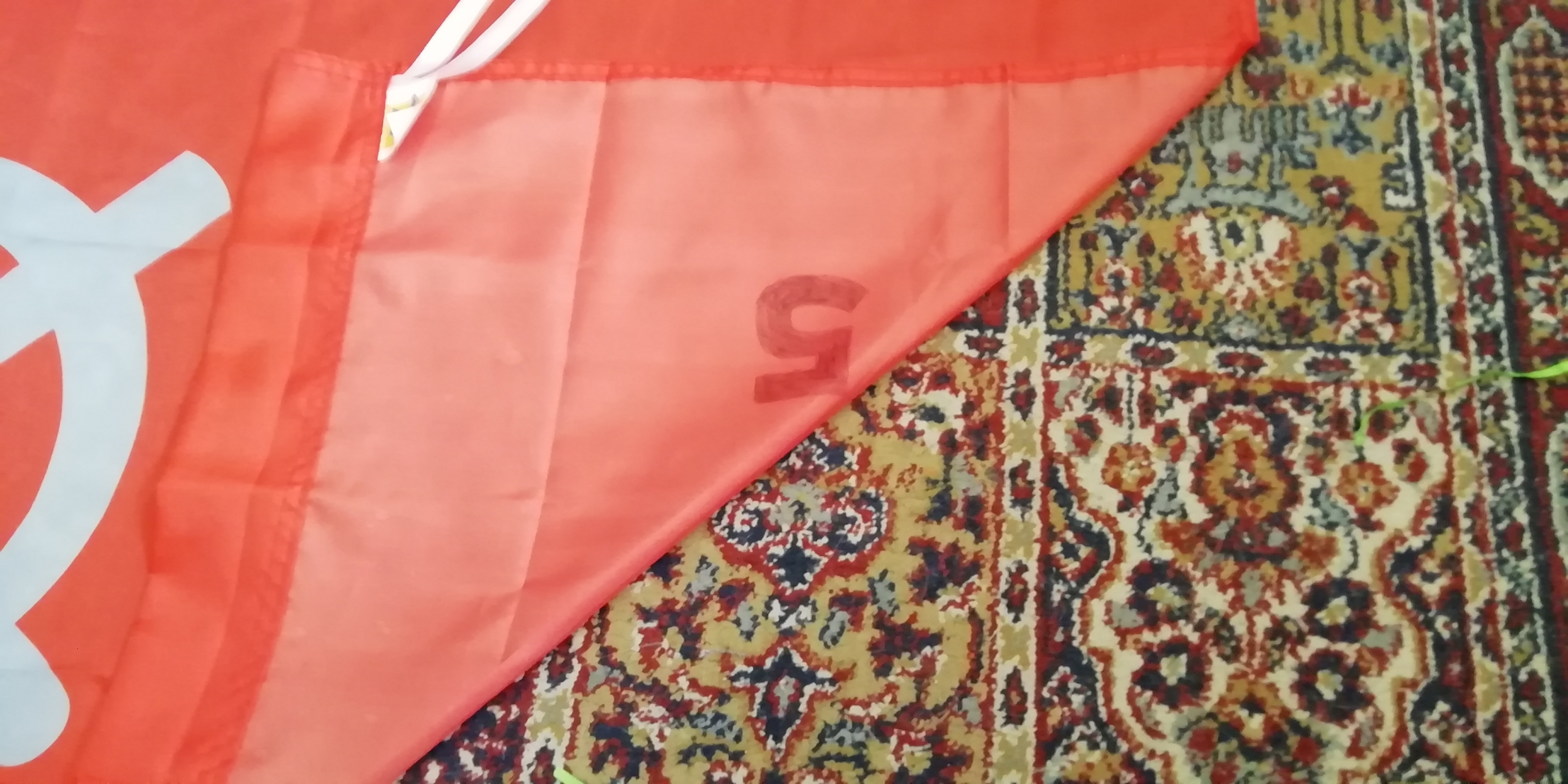 The Red Flag – or ‘Red Banner’ – was carried to the top of the Reichstag around the 30th of April (although exact dates vary according to source), by ‘Shock Troops’ of the Soviet Red Army who had to fight for every inch of ground during the Battle of Berlin (which raged between April 16th – May 2nd, 1945), sixteen-days of savagery that cost the Soviet Red Army an astonishing 350,000 casualties! This means that the Soviet Red Army lost a staggering 21,875 soldiers per day (killed and wounded)! This is a phenomenal figure considering the relatively small geographical area contested by the Soviet Red Army and the fanatical Nazi German defence! Thousands upon thousands of ‘Red Flags’ were issued to Soviet Red Army soldiers that were ‘numbered’ (for ‘official’ purposes) and carried into battle through the streets of Berlin! The German people were to be ‘liberated’ from Adolf Hitler and not necessarily ‘conquered’! Fascists were to be destroyed without mercy – but not the ordinary German working-class forced into fighting for Hitler! The Red Flag that made it to the top of the Reichstag had the number ‘5’ marked on its reverse! Today, most replicas of this flag do not possess the number’5’ on its reverse – and so today we have added it as a family project out of respect for the memory of the Soviet Red Army!