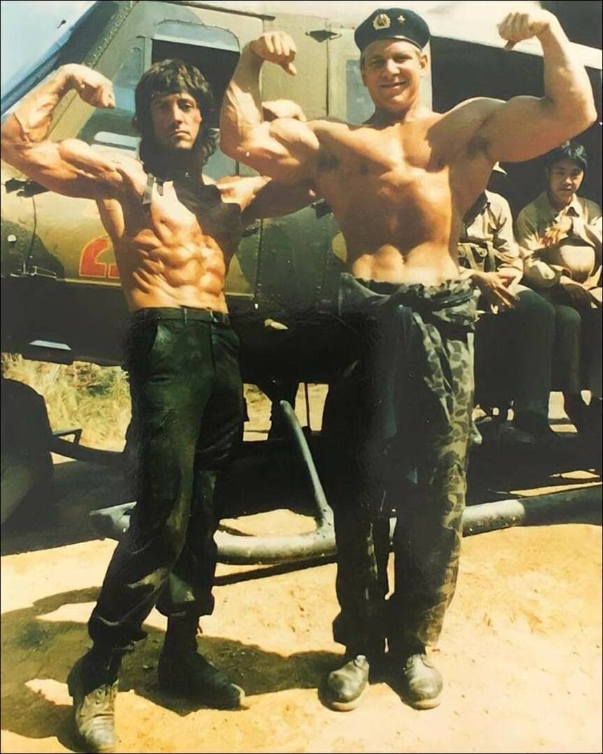 Archival photo. Sylvester Stallone and a Soviet officer on the set of Rambo First Blood II, 1980s. Born in the USSR – subscribe