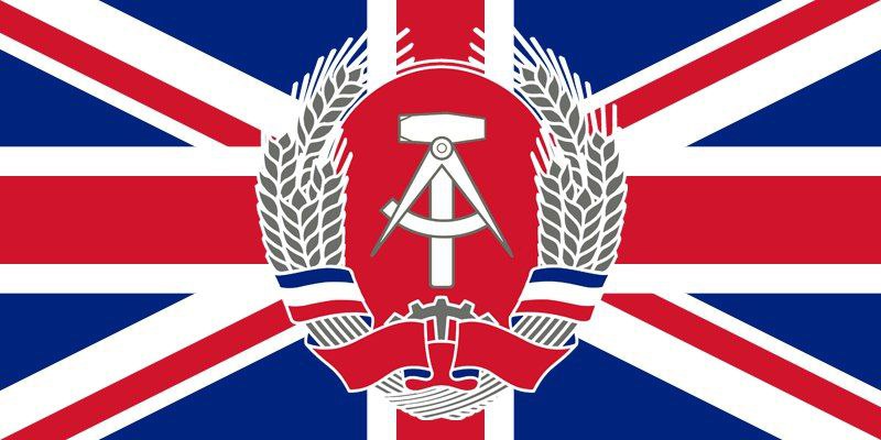 A bit of revolutionary aesthetics – the alternative flag of the Communist Party of Great Britain. Classic “Union Jack” coupled with the motif of the GDR.