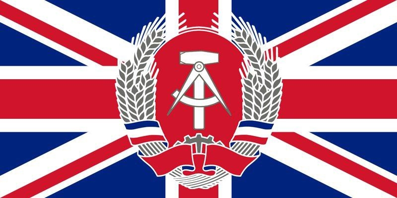 Немного революционной эстетики – альтернативный флаг Коммунистической партии Британии. Классический «Union Jack» вкупе с мотивами ГДР.
