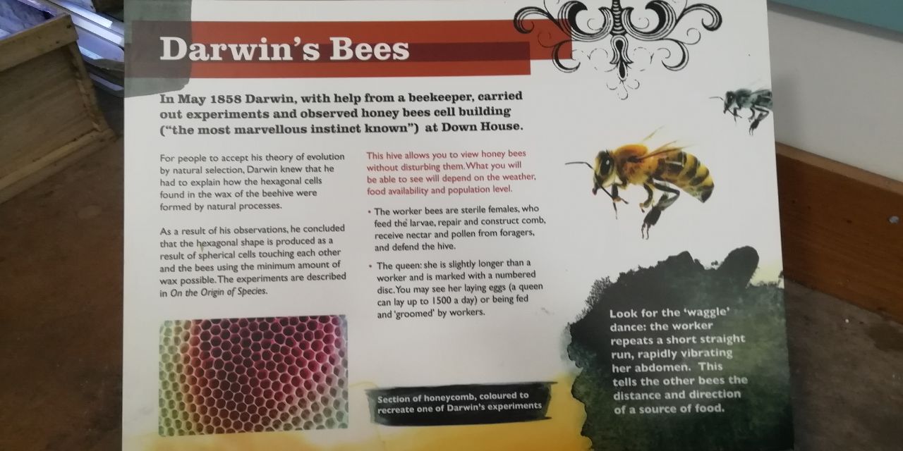 We have visited Down House a number of times in the past for educational needs – and to marvel at Darwin’s copy of Marx’s ‘Das Kapital‘ that is no longer on display (follow the link to read my article on the Buddhist Marxism Alliance UK website)! We last came in March (2022) as ‘Lockdown’ was abating! However, at this time we noticed that there was no Bees! We were told by a member of staff working in the ‘Out-House’ that the Bees are only at Down House during the Summer months and that they are moved to a warmer area (possibly in-doors) for the rest of the year! The ‘Queen’ Bee is distinguished by a ‘blue-dot’ which is placed upon her by the Bee-Keeper! Gee, Kai-lin and Mai-An eventually found the Queen Bee beneath a mass of doting Worker-Bees! Obviously, these are not actually ‘Darwin’s’ Bees – but this population of bees convey the general ideas Darwin was exploring and working with!
