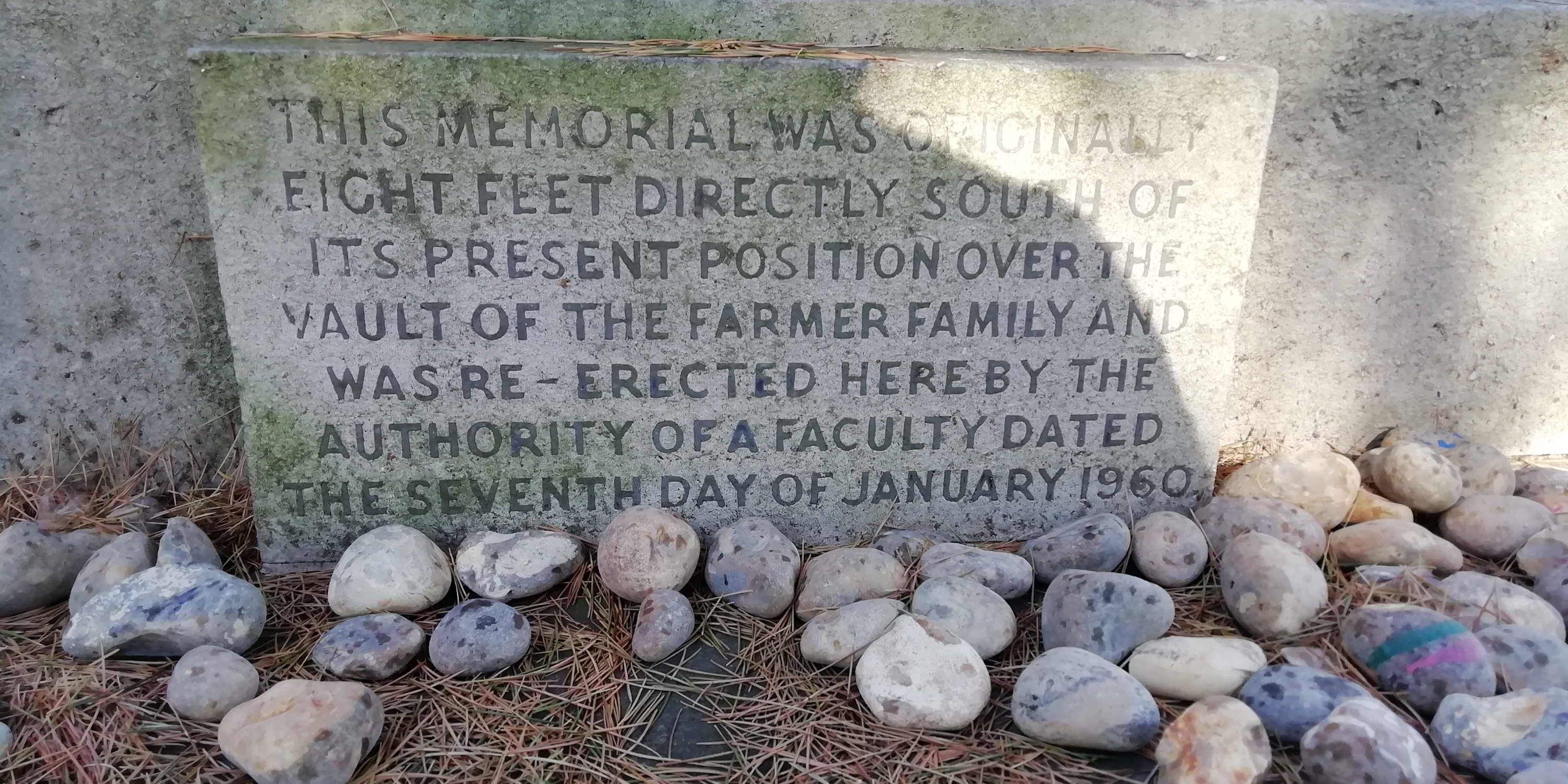 It tuned-out that as the Farmer family were rich, ennobled and eventually ‘royal’, they possess a family tomb located the ‘closet’ to the Church structure than any other grave located in that yard! Indeed, their tomb expresses not only their high social standing, their class and their wealth, but also expresses the amount of money the family left the Church to maintain their tomb (which is in fact a ‘crypt’). As the modern variants of Christianity have no moral qualms accommodating the ideology of predatory capitalism – the message displayed in this Church (and thousands like it across the UK and the world), is that money on earth can purchase a guaranteed spot in heaven – as if a good seat at the local theatre is being negotiated and confirmed through the exchange of finance! Exactly one hundred years after his death (in 1960) the monument that original covered the family tomb of the Farmers was ‘shifted’ 8 feet to the North to accommodate a Church improvements. It is interested to note that the parts of the graveyard still in use (and attracting money) appears very well kept and is in good order – whilst those sections containing older burials are in a very poor state. Those who believe in the mixing of wordily finance and spiritual sustenance should ask their brokers whether this is a good investment!