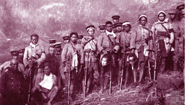 Taiwanese aborigines in Japanese military uniforms were barefoot, carrying the heads of the Talu people, and took photographs with the Japanese military and police officers. There are many small indigenous countries in remote areas of Taiwan, and the fighting is constant. The Japanese colonial authorities deliberately provoked them to confront each other and drove them to kill each other. [Edited by Qin Feng’s Old Photograph Gallery: “Historical Photos You Haven’t Seen” (Part 1), pp. 370-371]