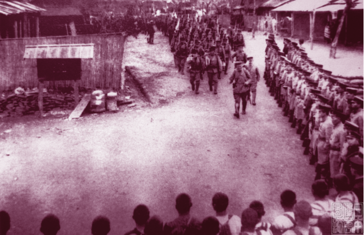 1930年11月20日雾社“讨伐队”解散,日军开始撤离。右侧列队“欢送”的是留下继续“清剿”的日军警察警备队。〔王延友提供〕